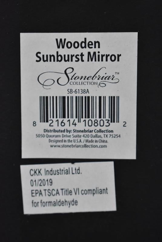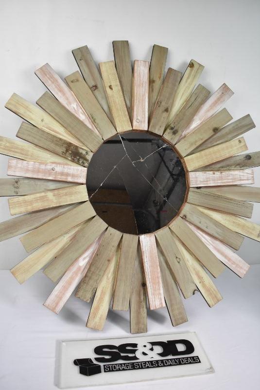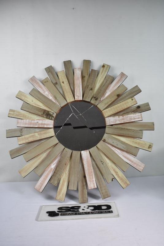 Stonebriar Large 32" Wood Rustic Sunburst Hanging Wall Mirror. BROKEN MIRROR