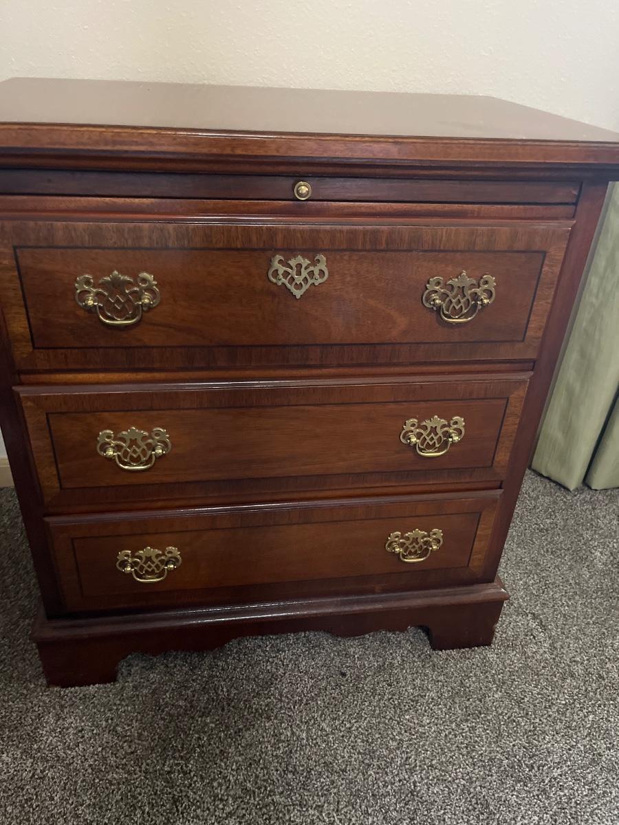 See pics. Very nice! 26w x 16d x 28h. Has blemish on top (see pic)