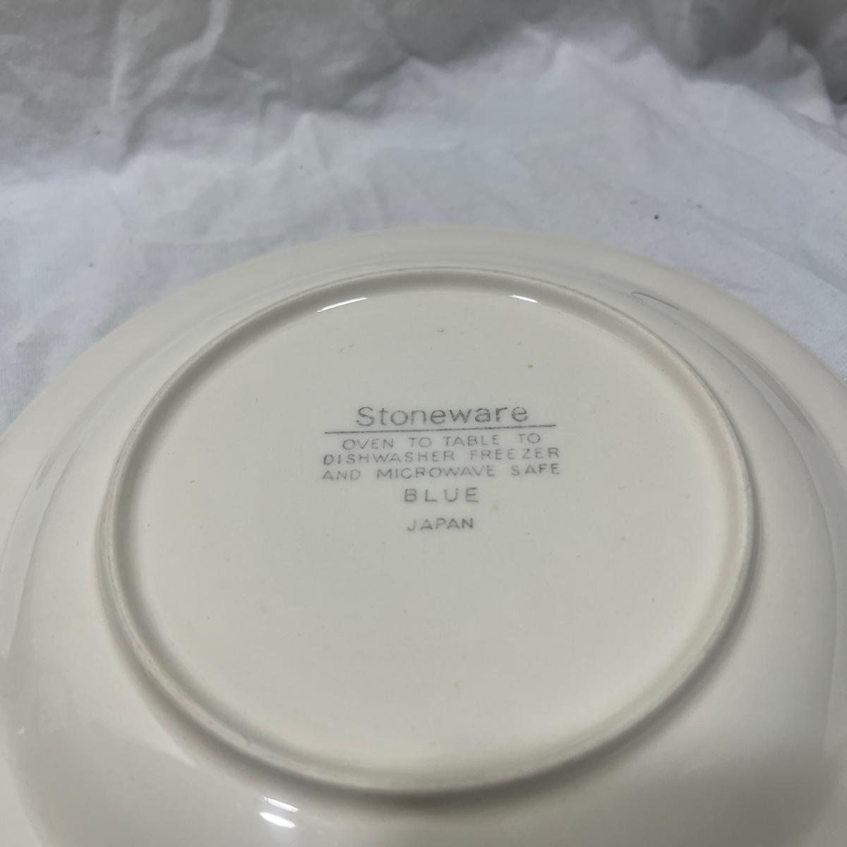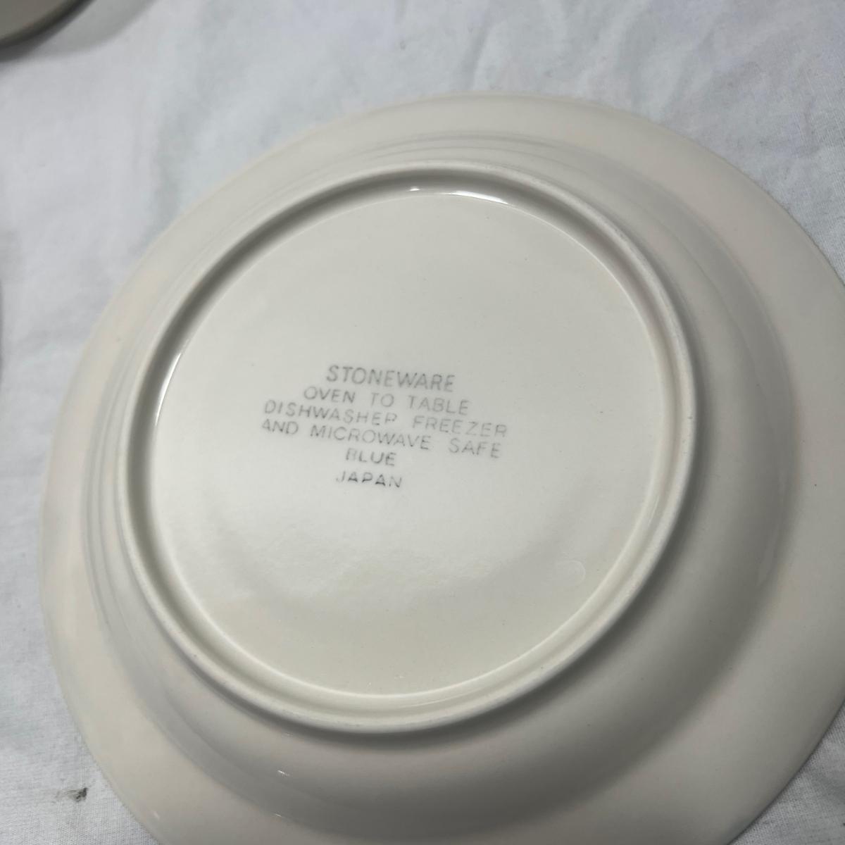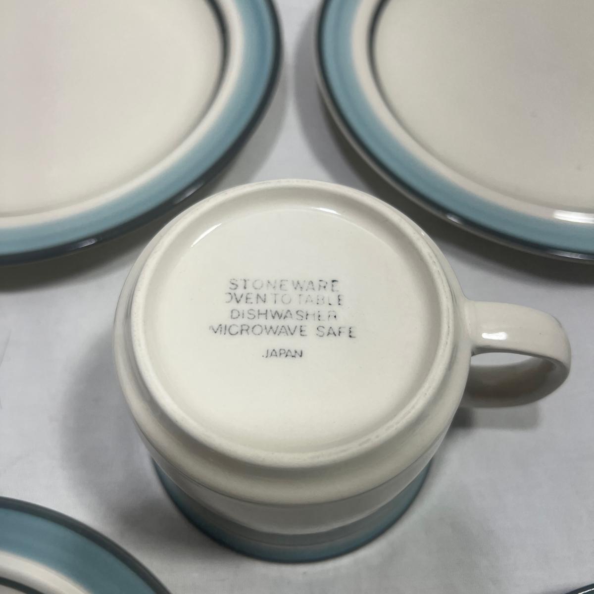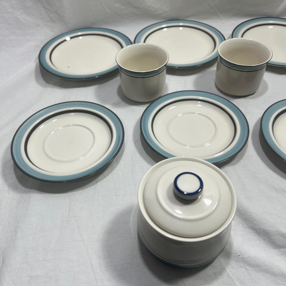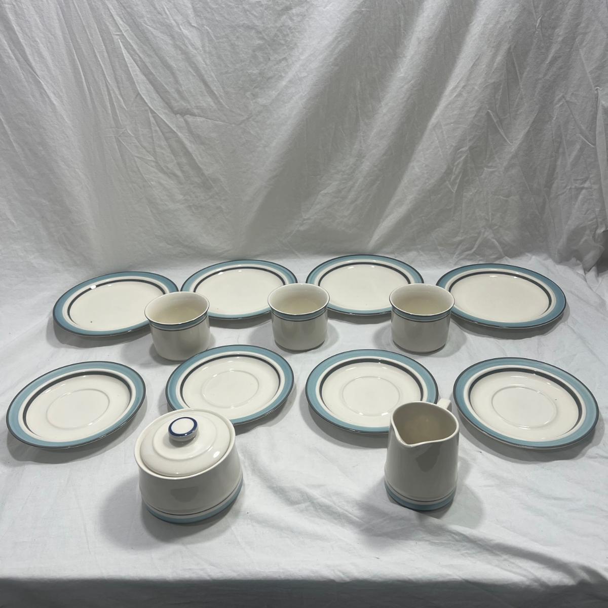 StoneWare Blue set; 4 medium plates, 4 small plates, 3 mugs cream pourer and a sugar dish