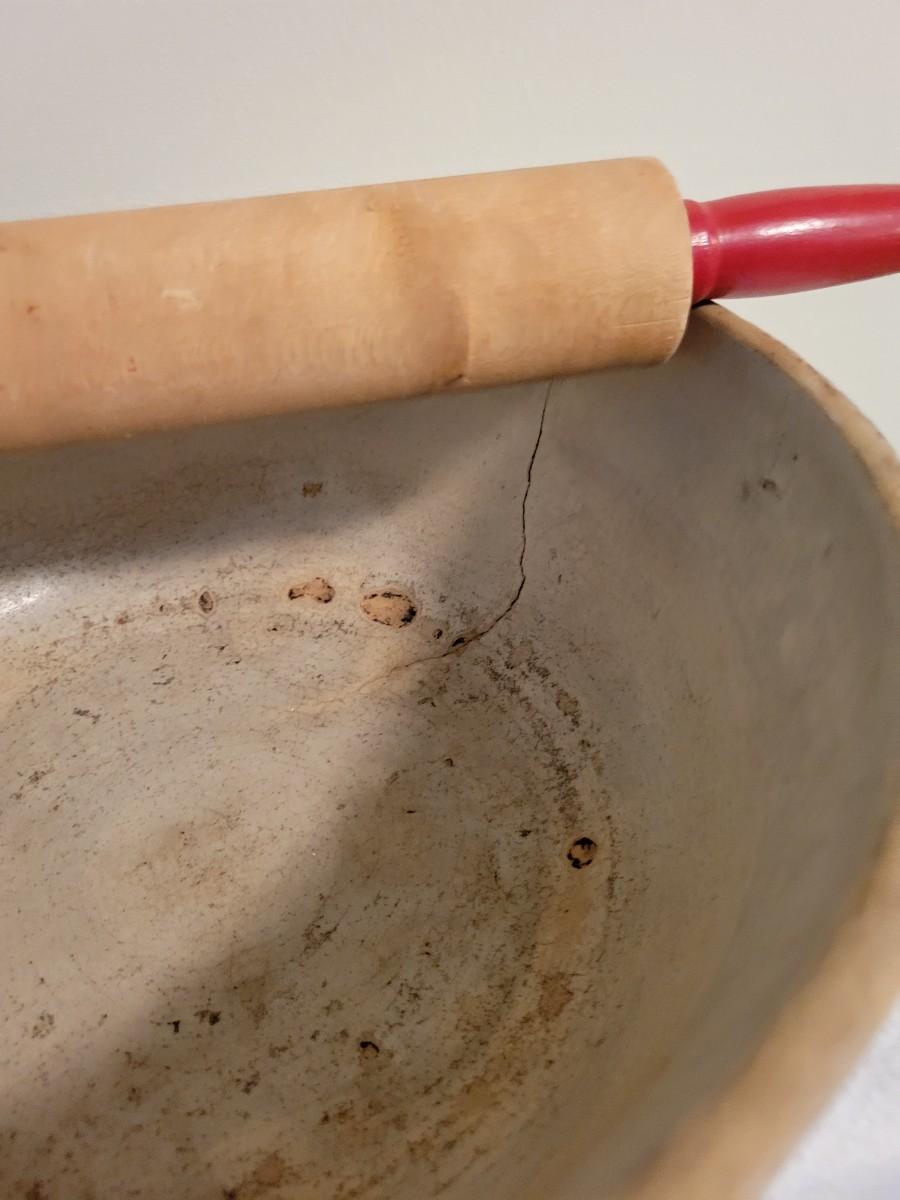 Bowl does have a Crack as Shown in the pics. Used for decor only.