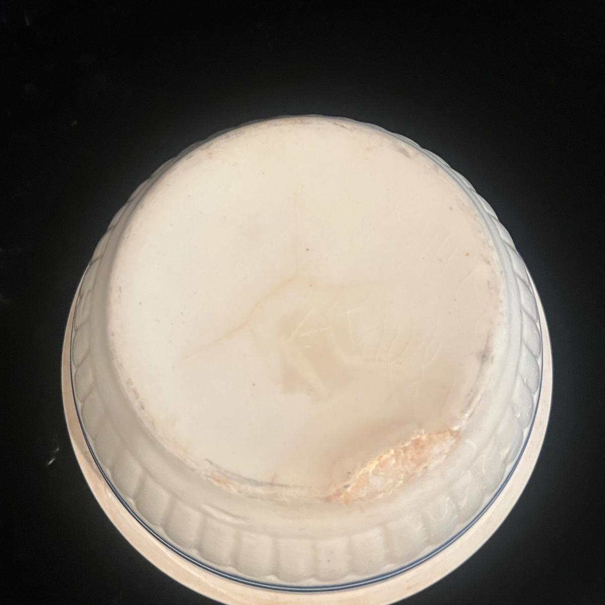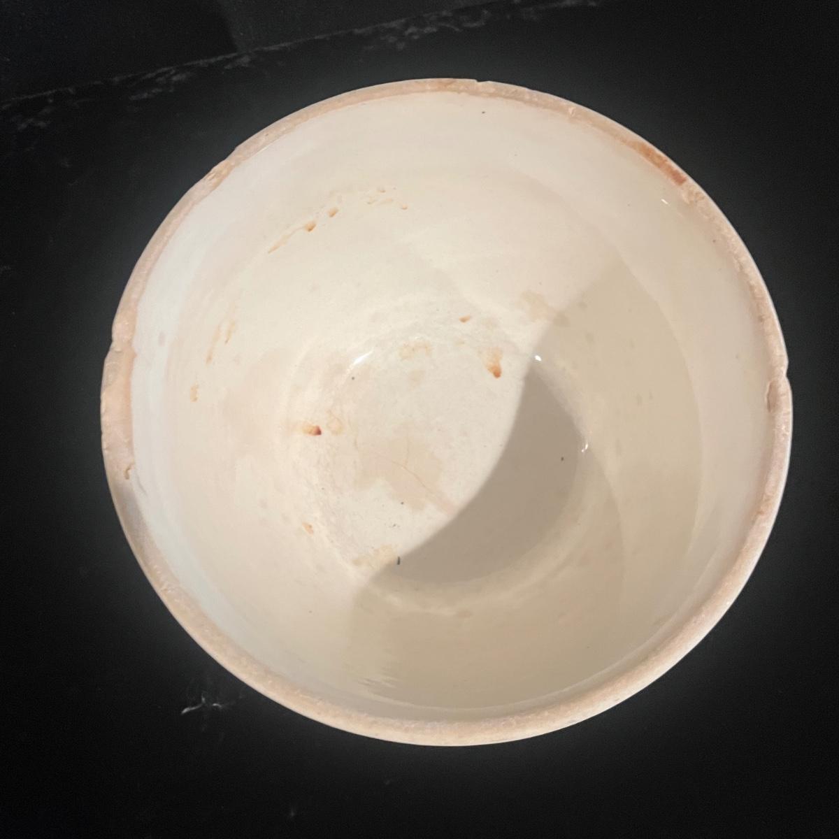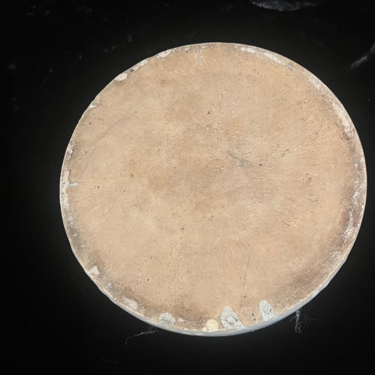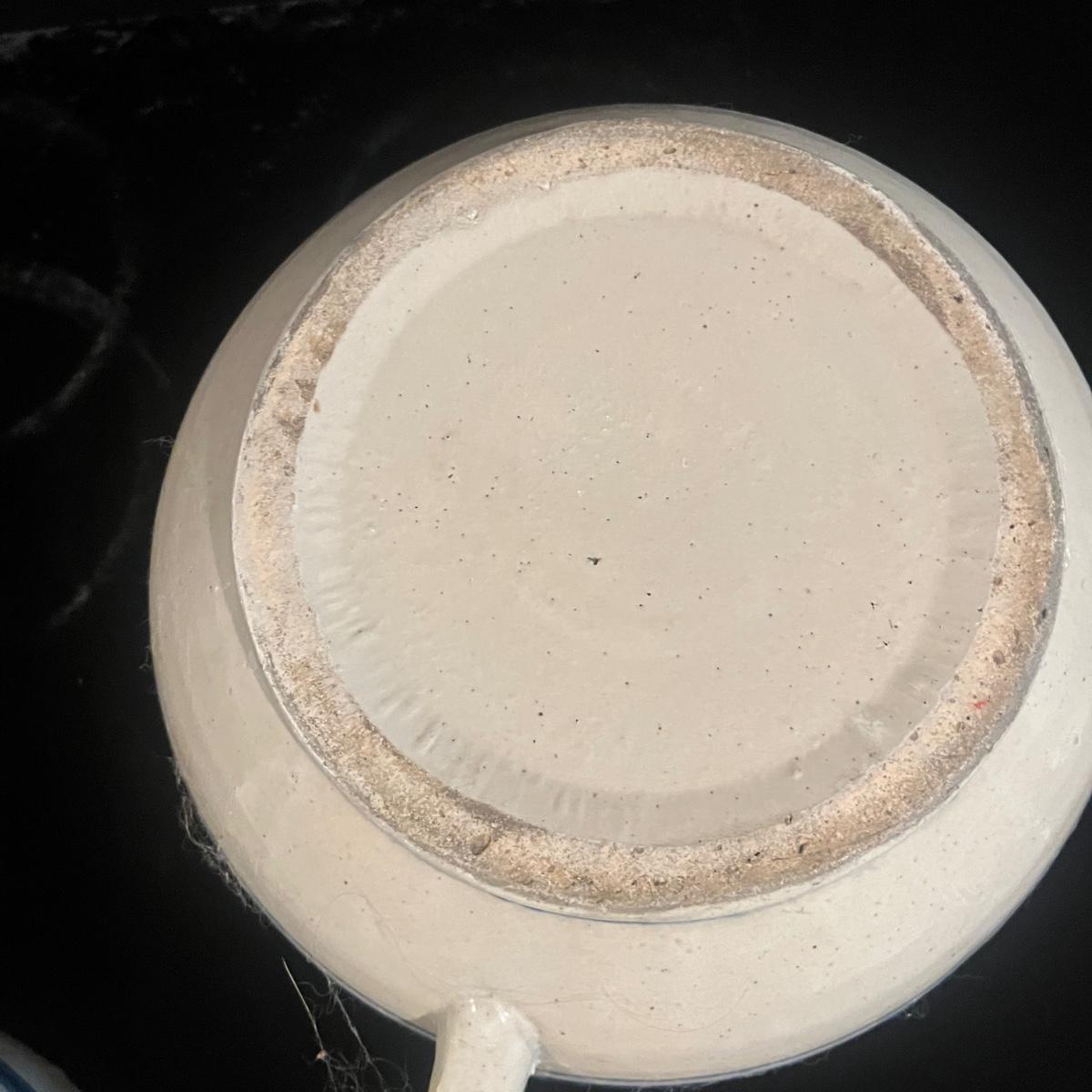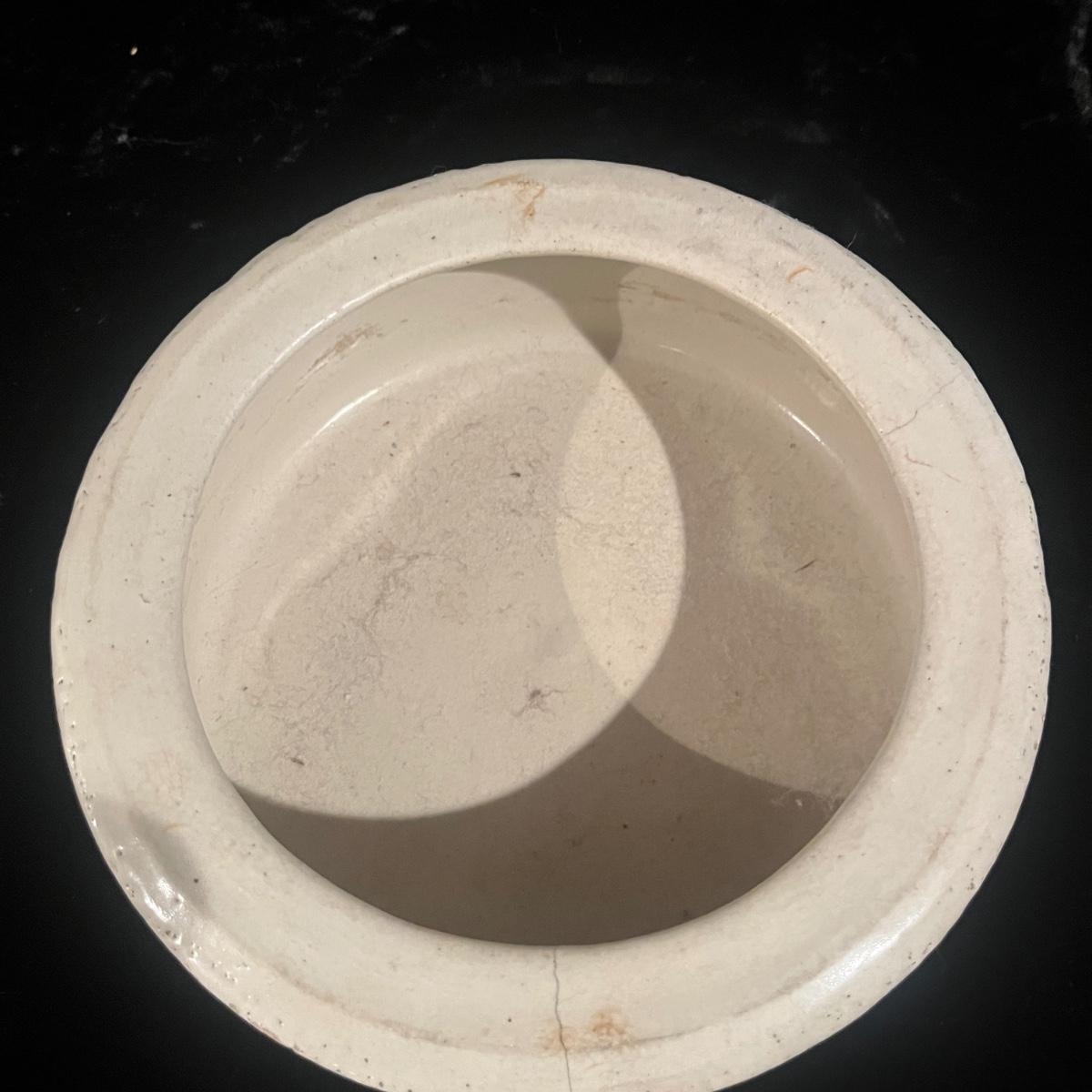 Lot includes four pieces of stoneware with two having handles. Largest piece measures 9.5”D x 6”H. Some condition issues due to age. Please see photos for details.