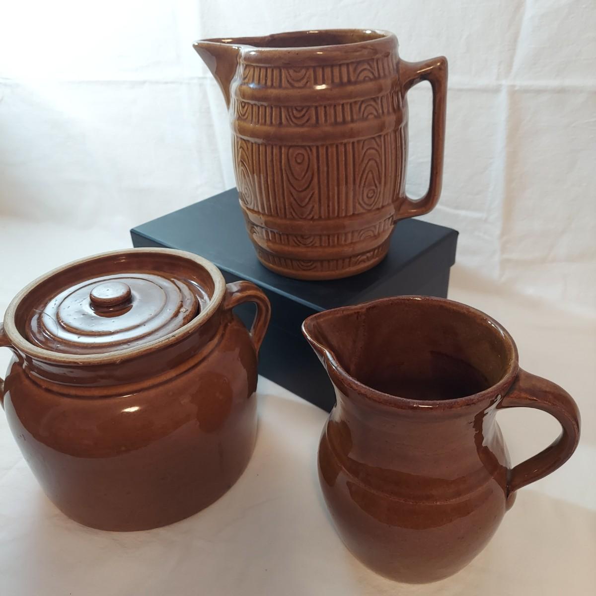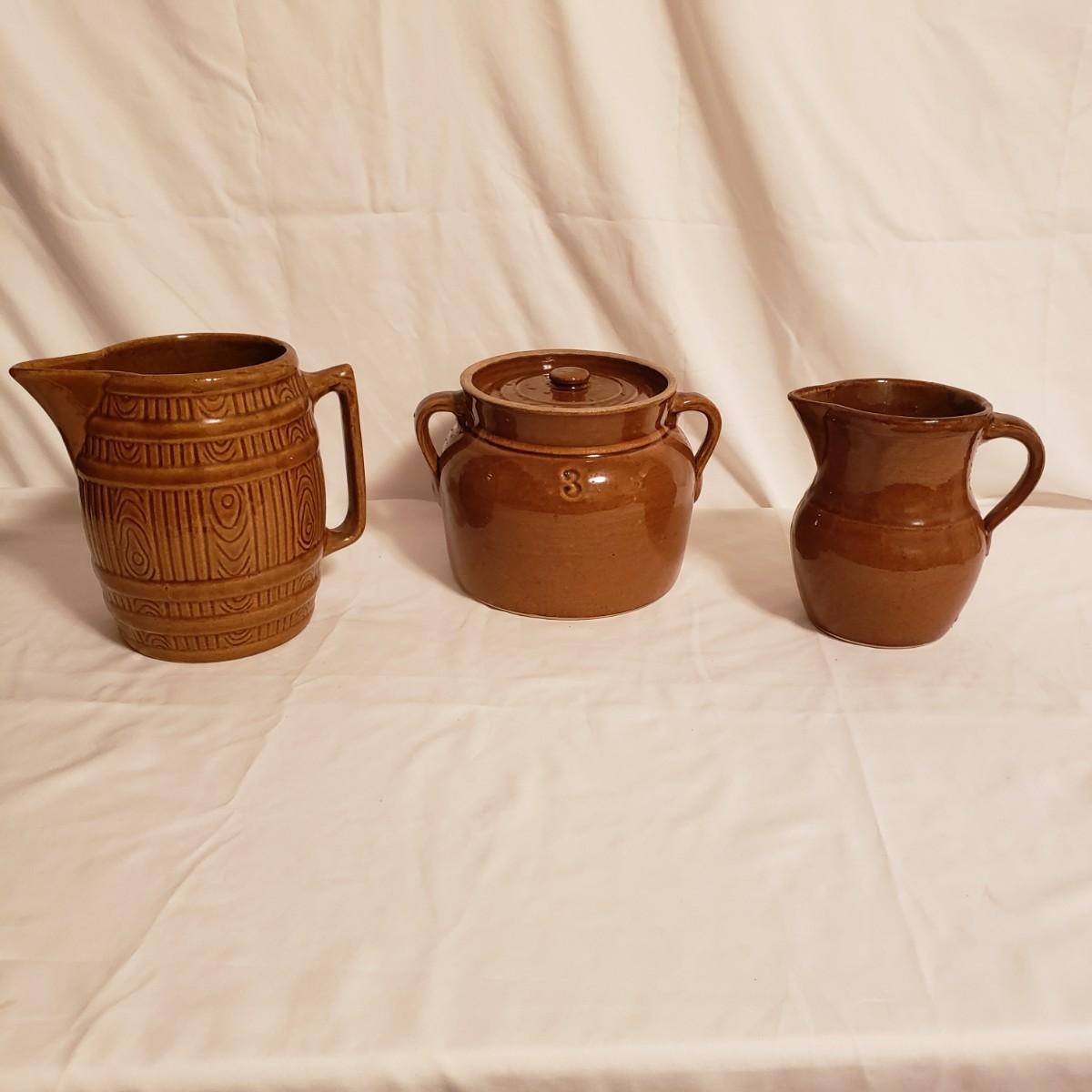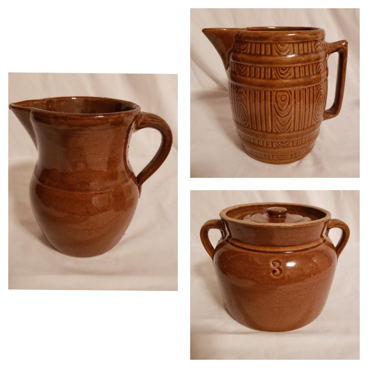 Stoneware Crock and Pitchers (LR-KD)