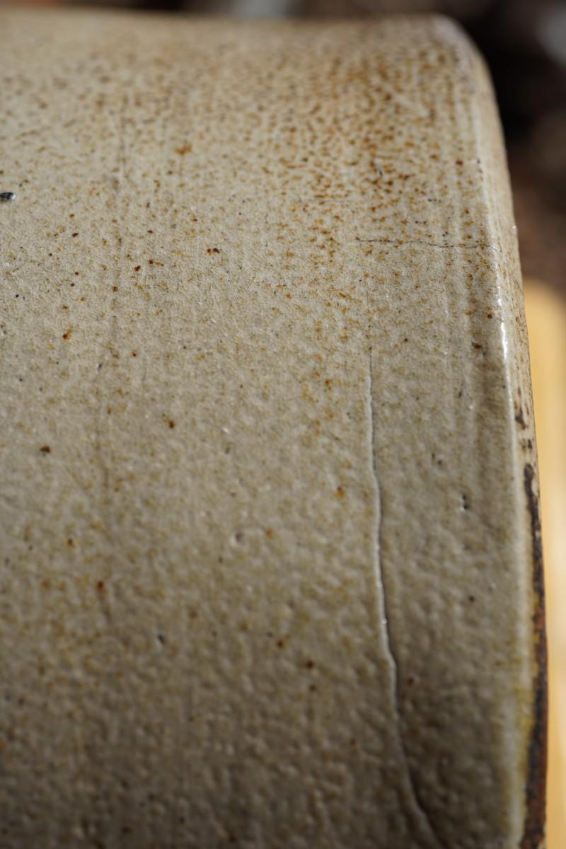 also slight crack, kiln crack, it is near the base and runs along the base about 5" It is more of a fold than a crack. see photos.