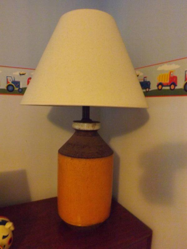 Stoneware lamp. 30" tall. **Please read Terms and Conditions before placing a bid. Pick up is Sunday, September 1, 2019 from 10am to 4pm in Williamstown. All sales are final. All sales are as is, where is. Please review all photos. Any props included in photos are not included in listing. All measurements are approximate.