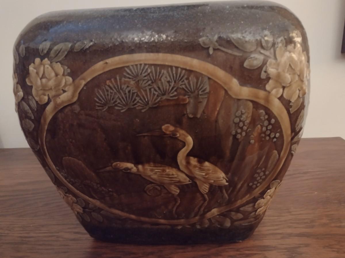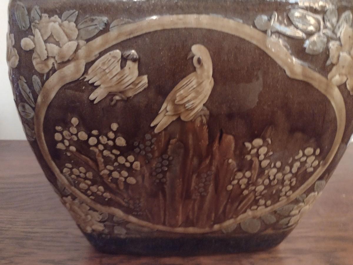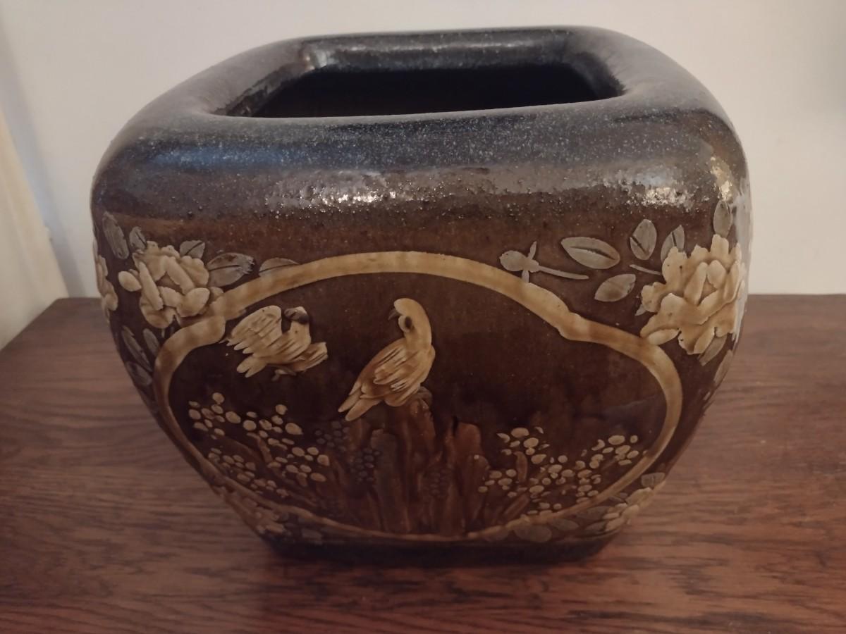 Stoneware Pottery Four Panel Ornate Plant Pot