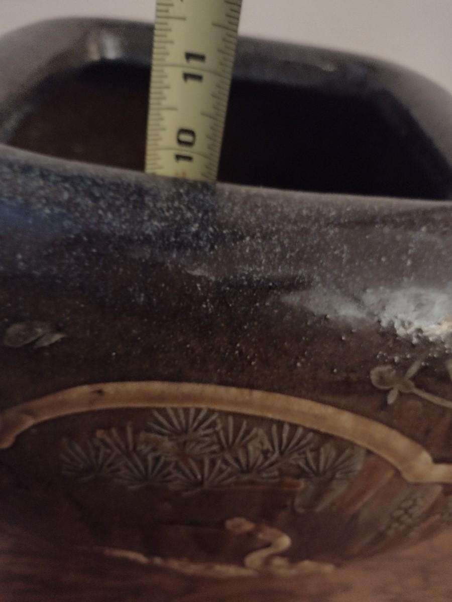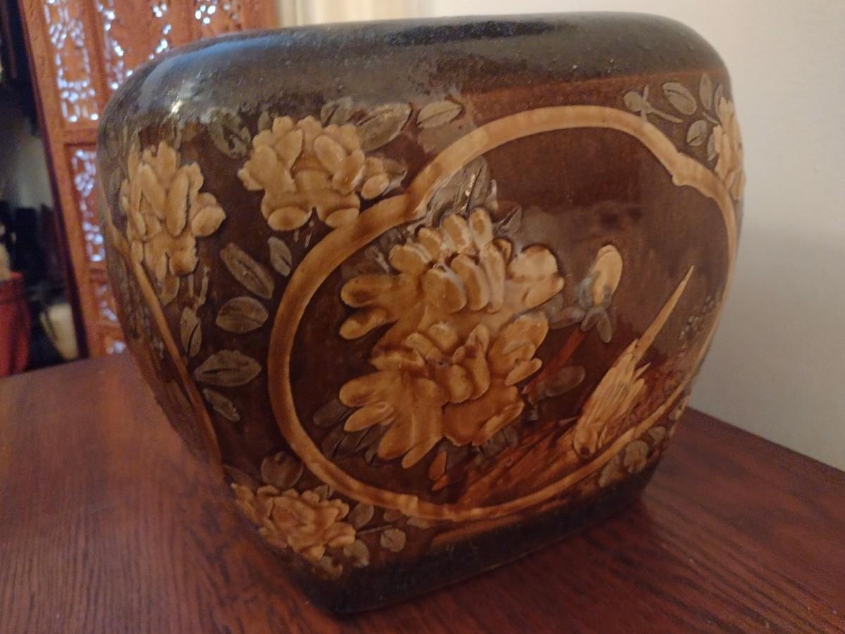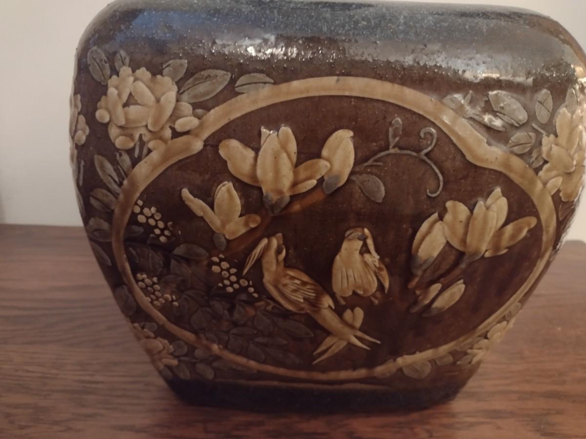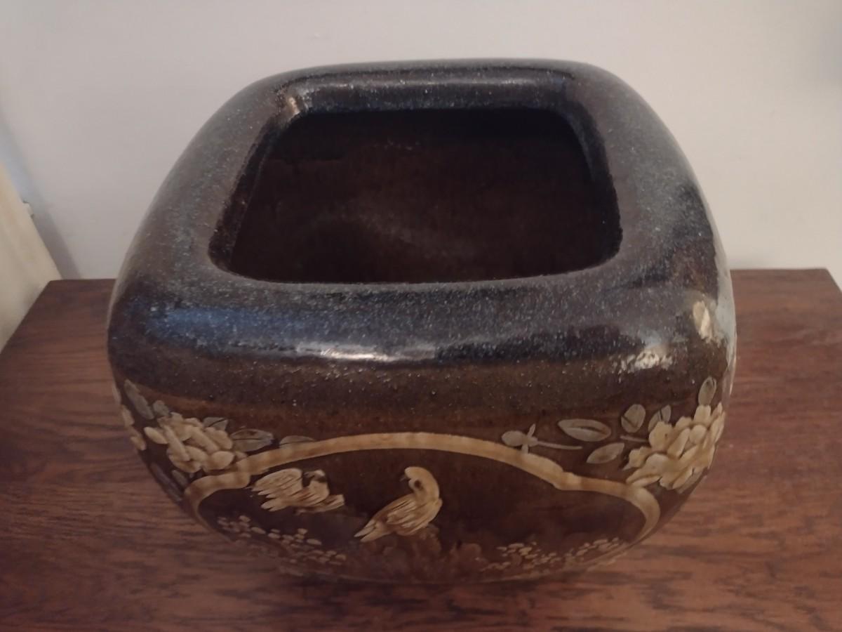 Stoneware Pottery Four Panel Ornate Plant Pot
