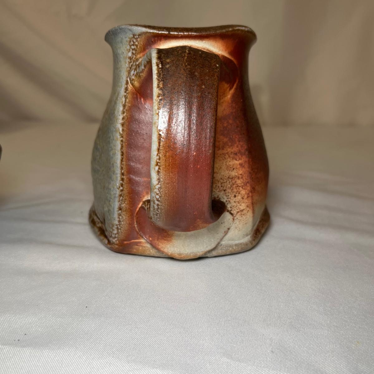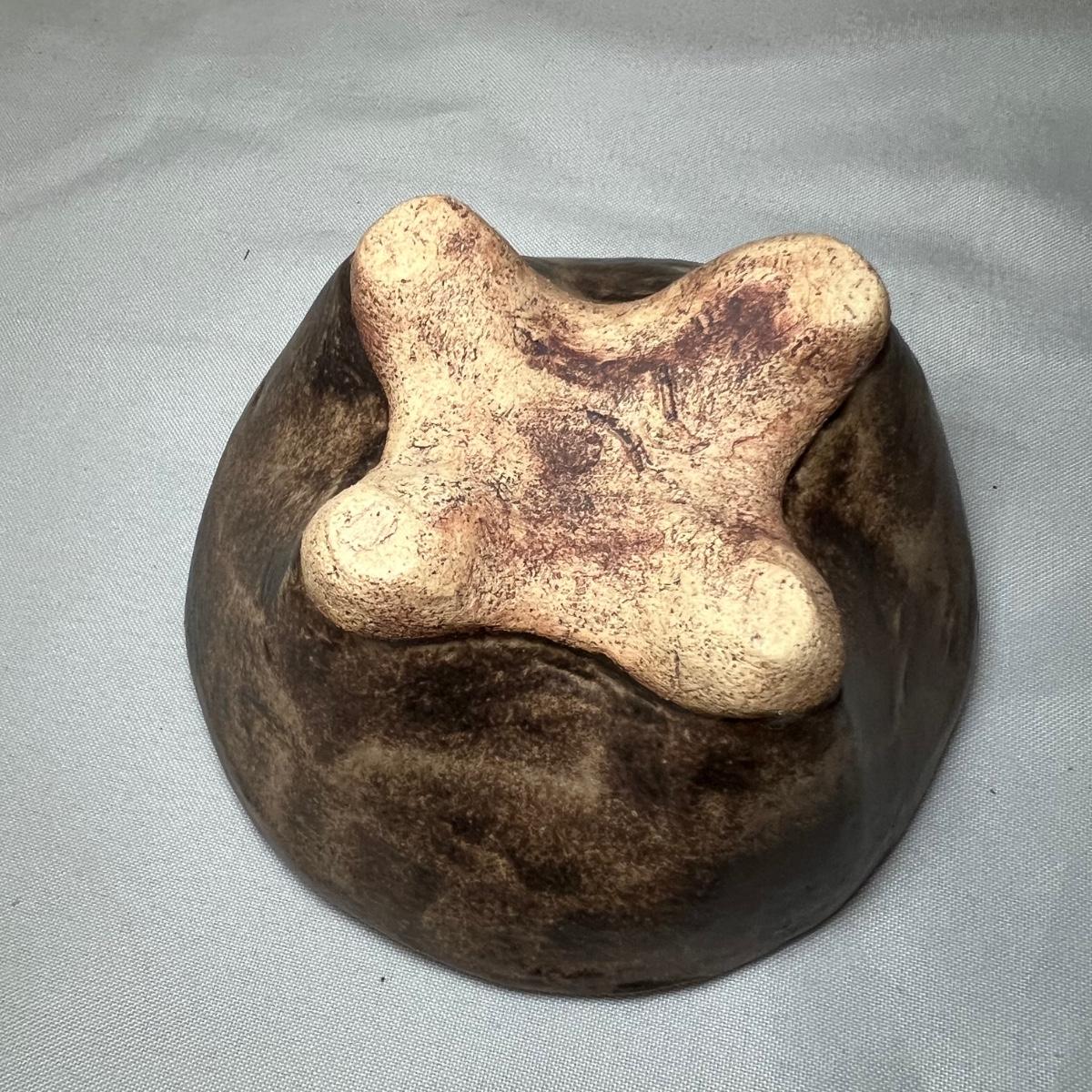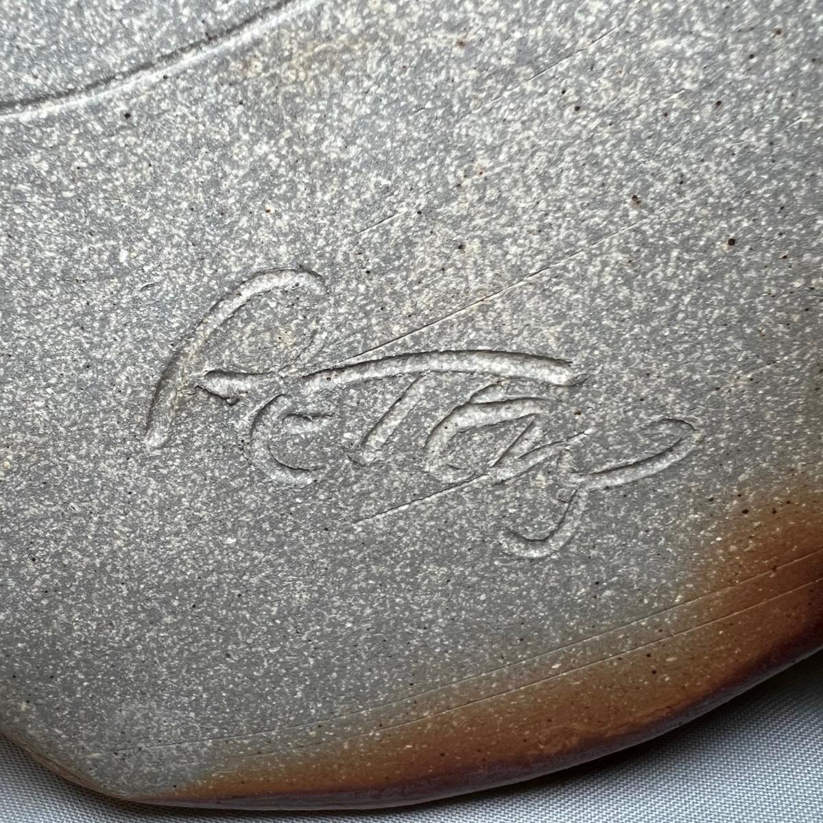 This stoneware teapot has a signature that possibly reads Peters, see image. Also included is a small footed dish with a heart shaped lid.