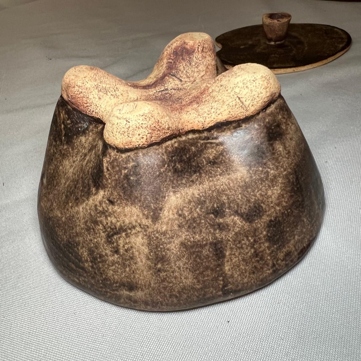 Stoneware Pottery Signed Teapot & Lidded Dish (K-RG)