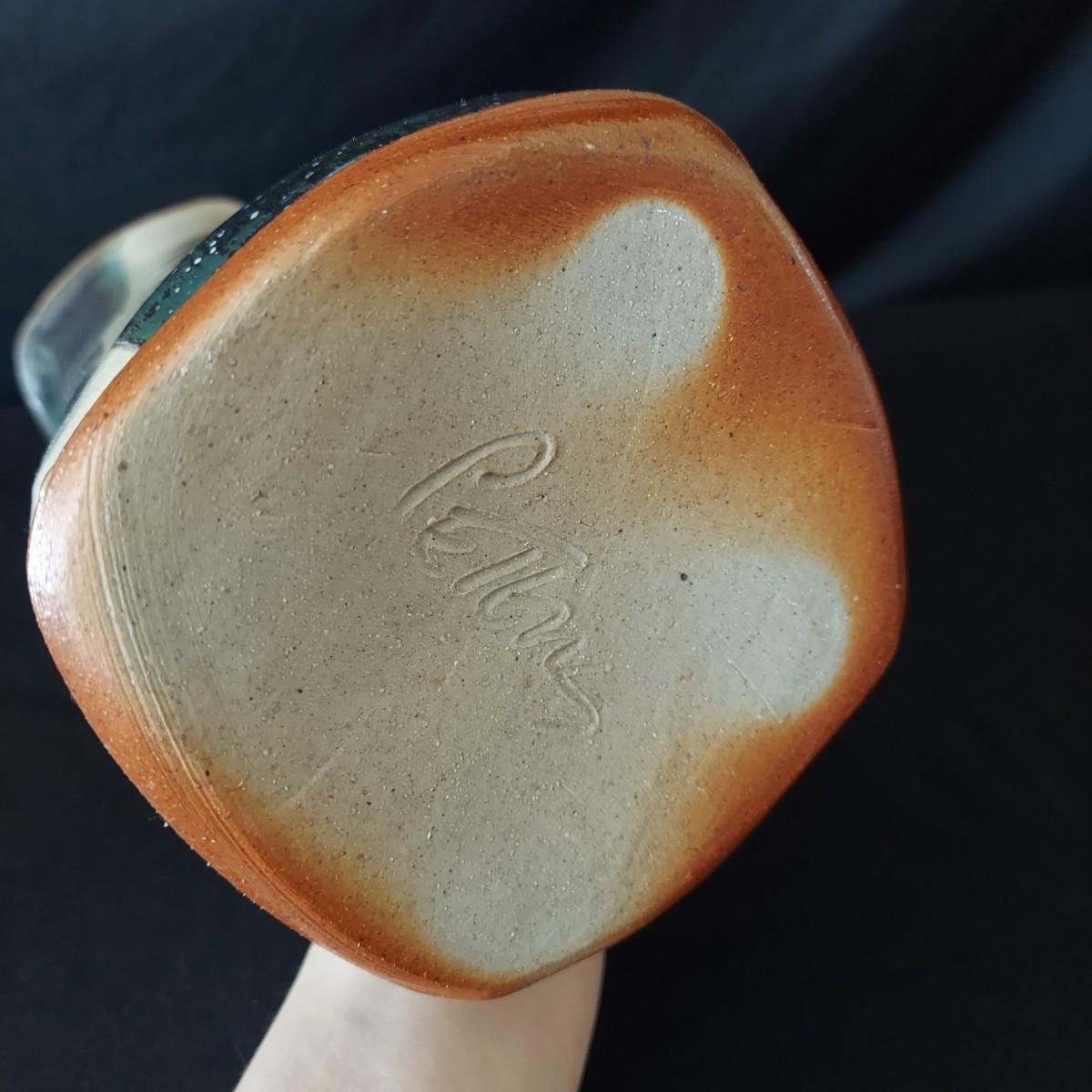 Three stoneware vases in various sizes and a small bowl. Tall square vase marked Peters measures 4.5"SQ x 13"H. The smallest vases is 4"D x 3"H. All pieces appear to be signed on the bottom. Please see photos for details. Shipping available