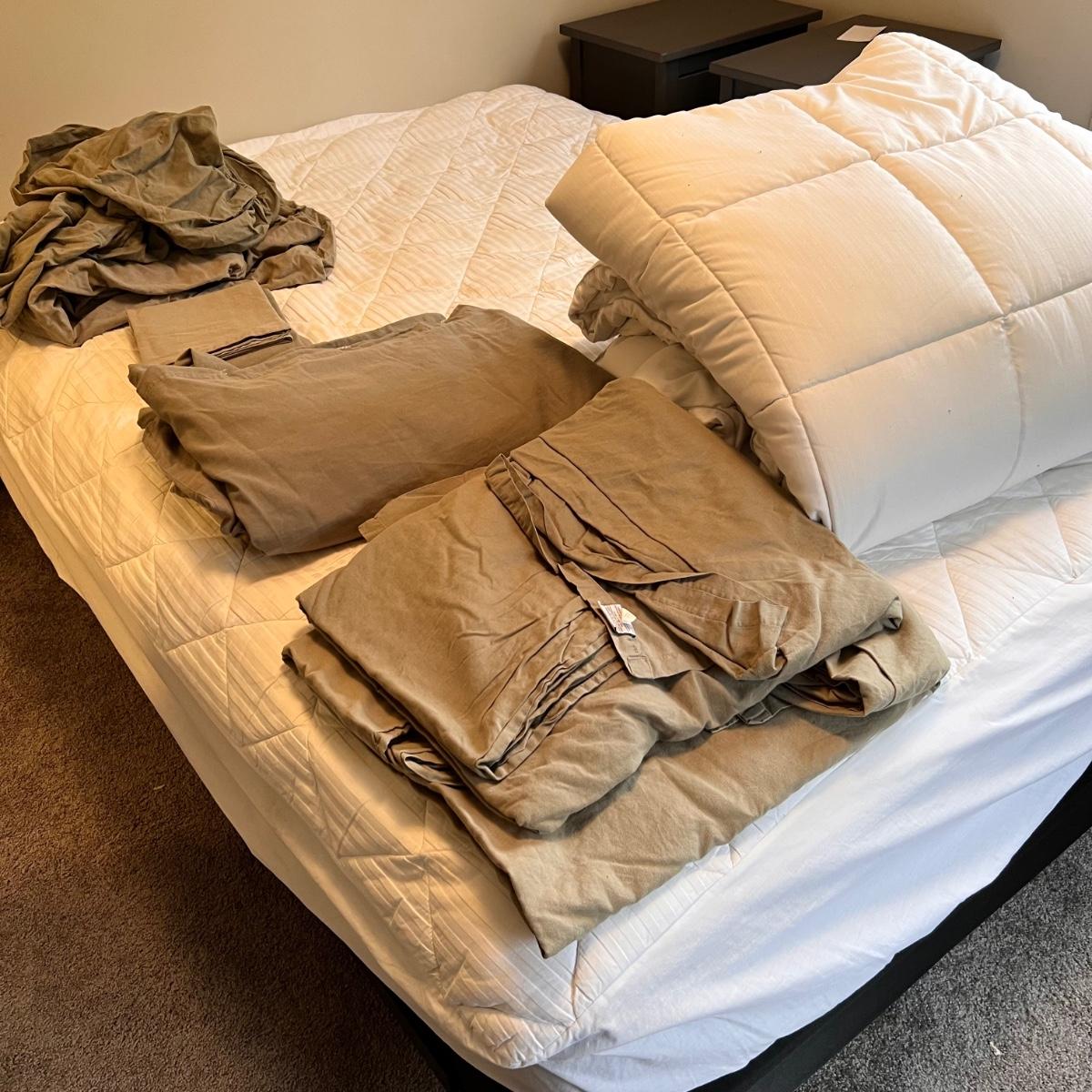 Stonewashed Linen Khaki Restoration Hardware Queen Duvet Covers + Sheets & Claritin Duvet (D-RG)