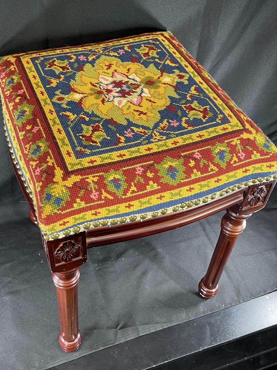 Needlepoint Tapestry Ottoman Foot Stool #1