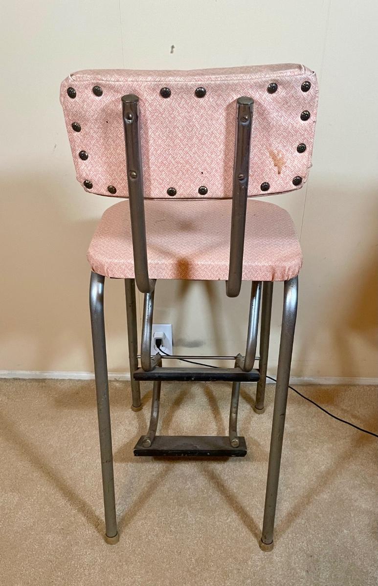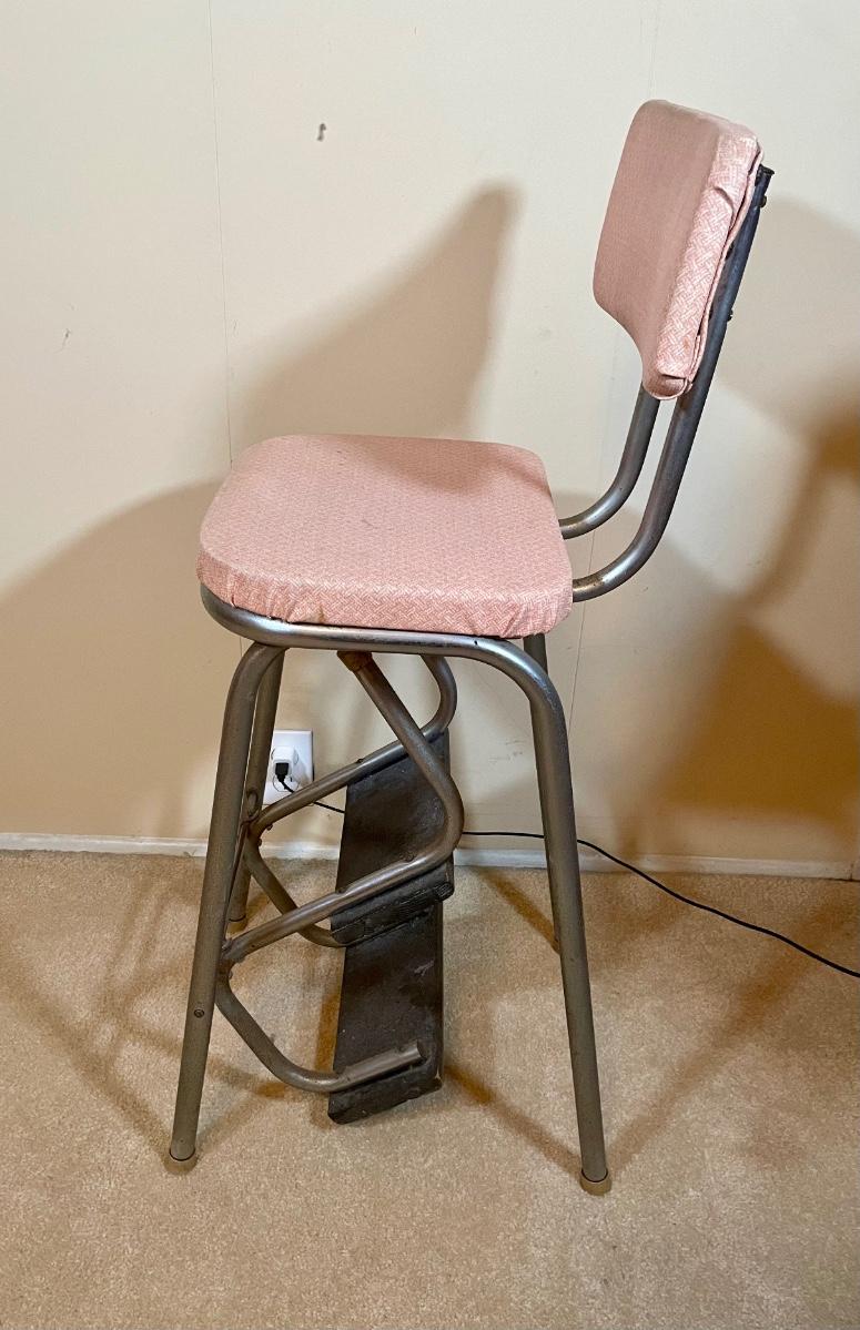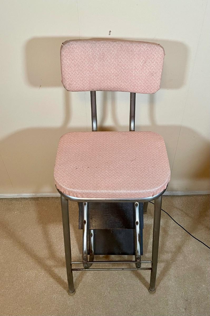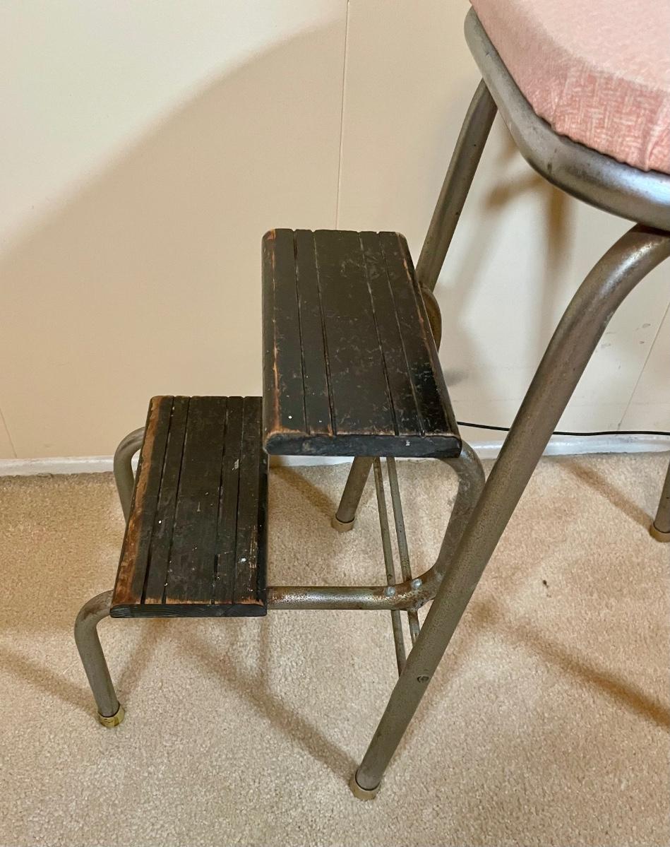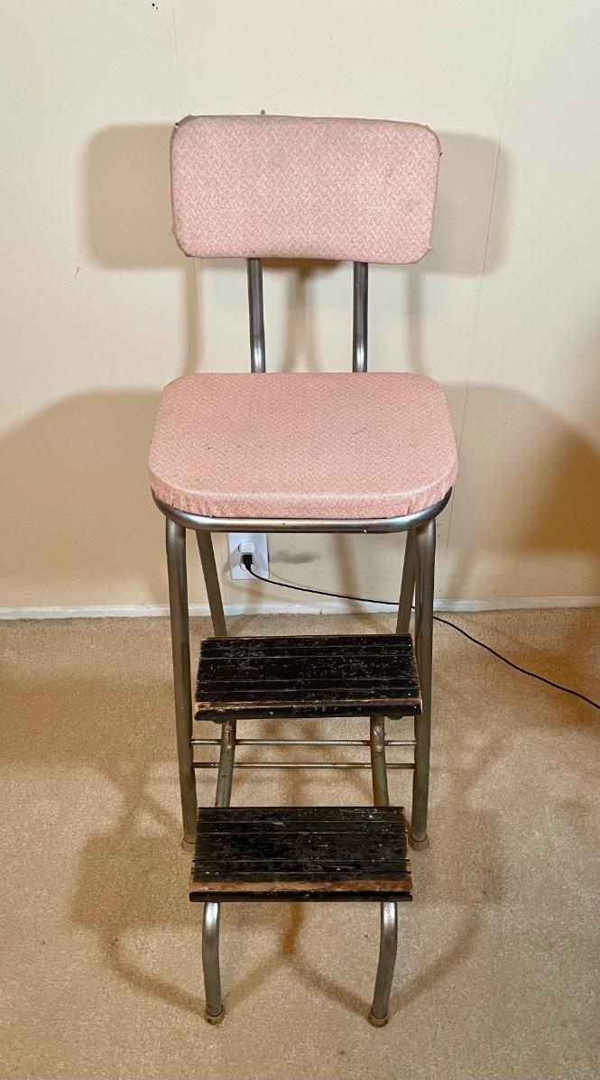Mid Century Modern Pink Vinyl & Metal Kitchen Chair Stool Ladder Combo