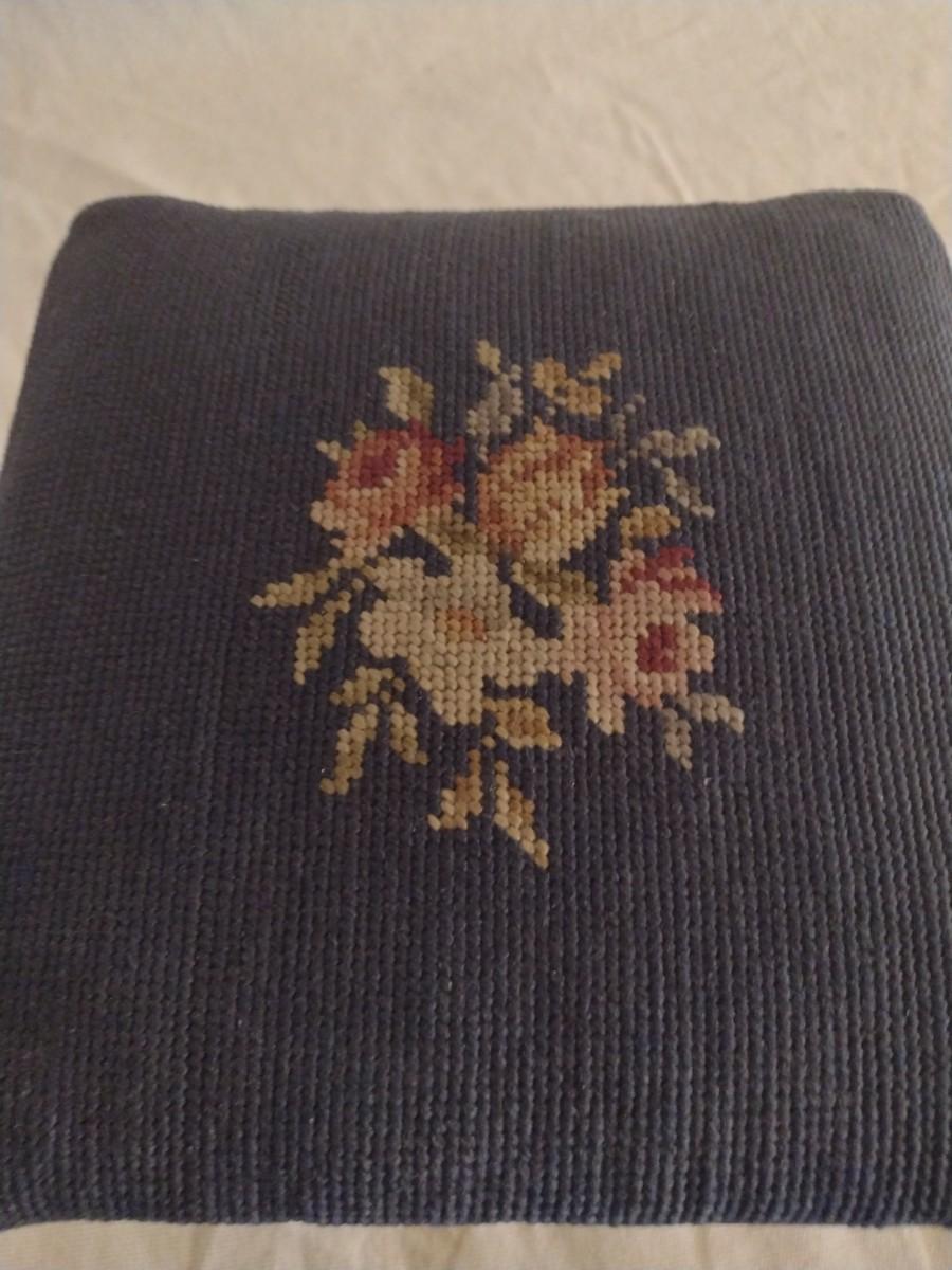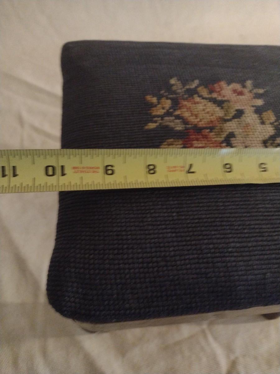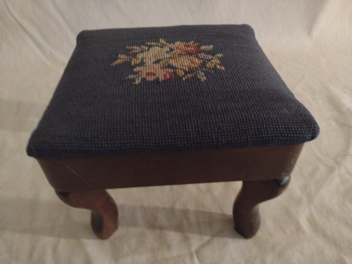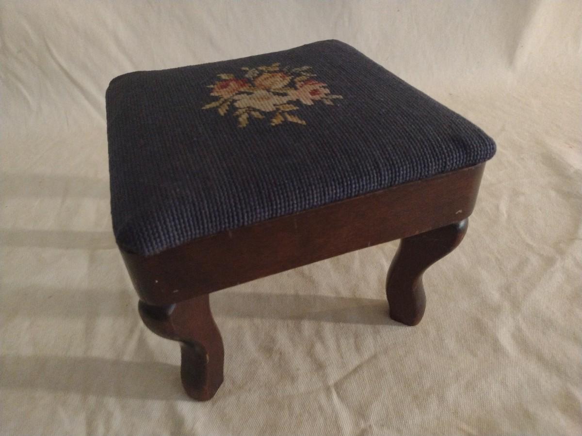 Mahogany Wood Framed Petite Stool with Needlework Upholstery