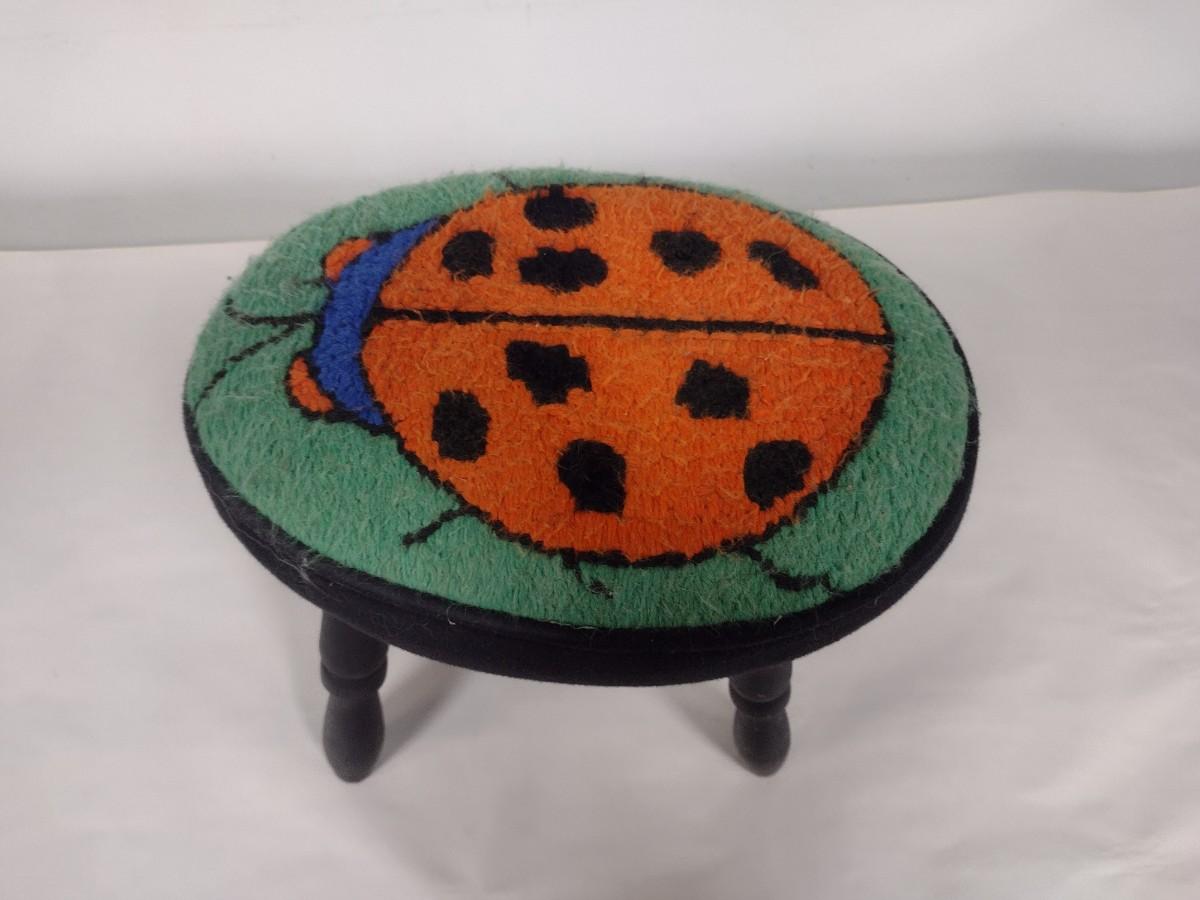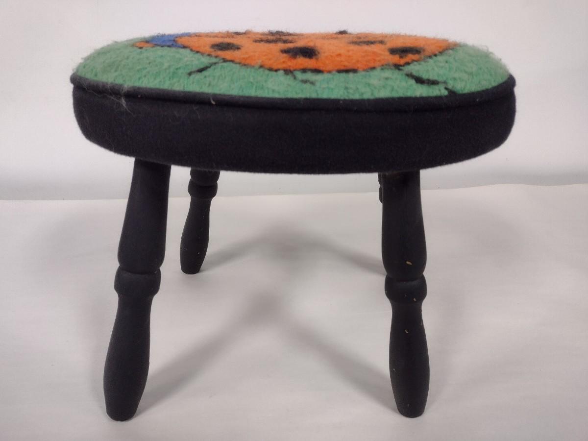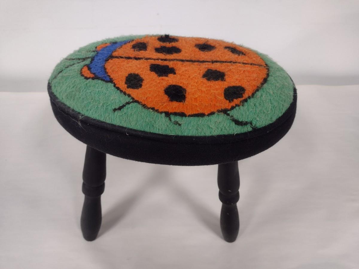 Wood Frame Stool with Ladybug Design Fabric