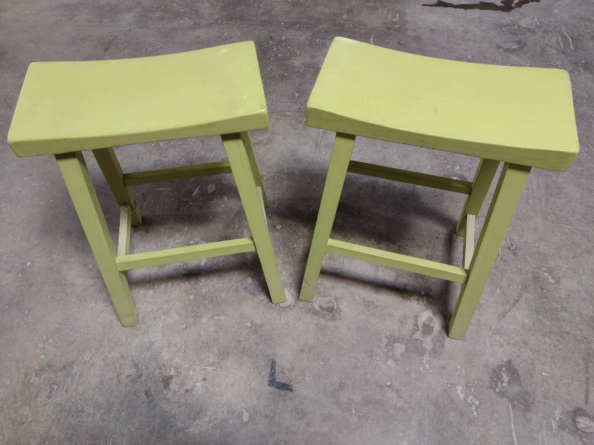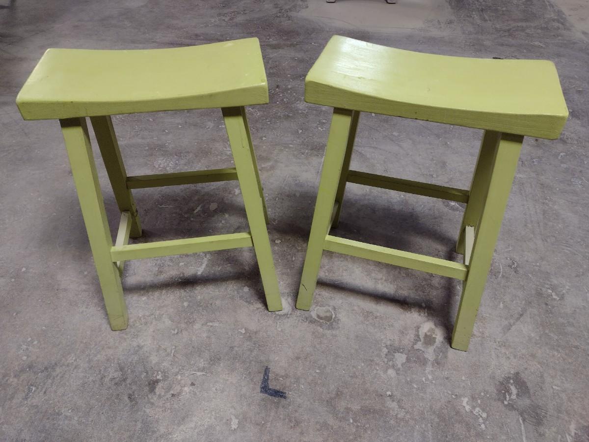 Pair of Solid Wood Saddle Seat Stools