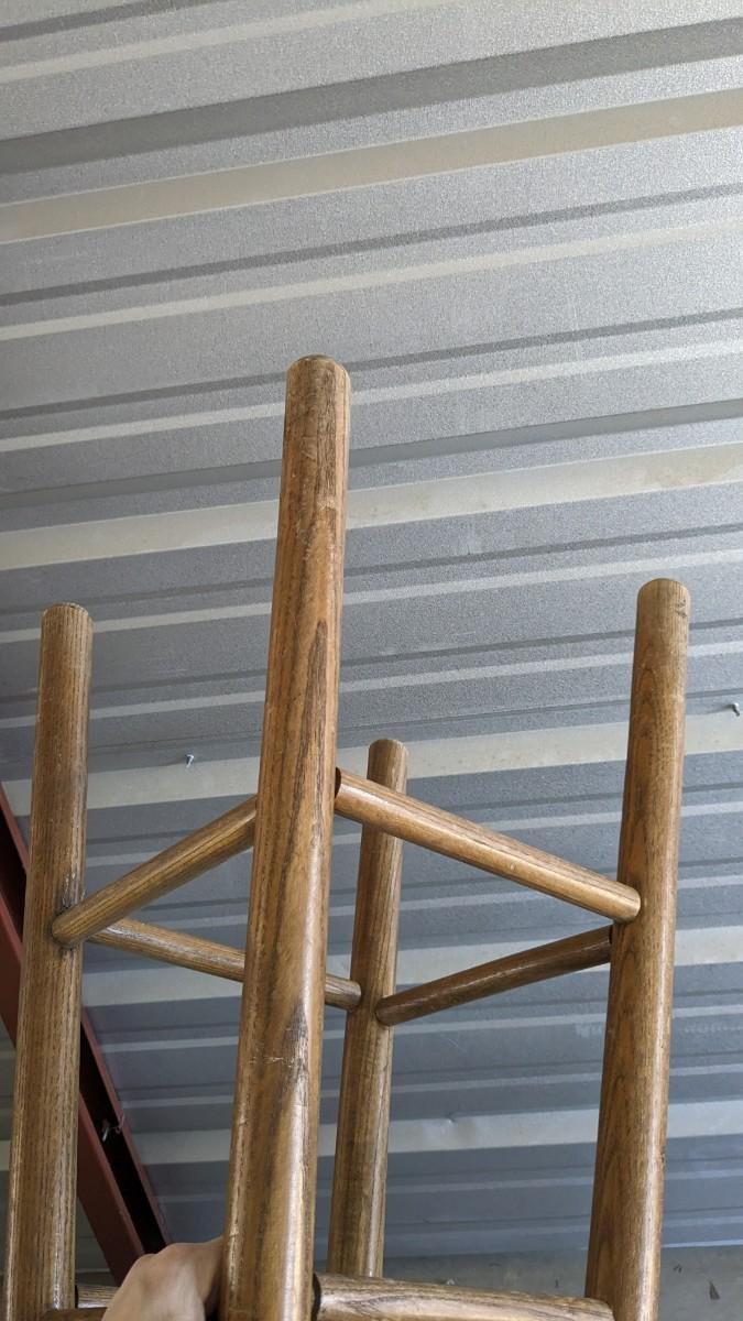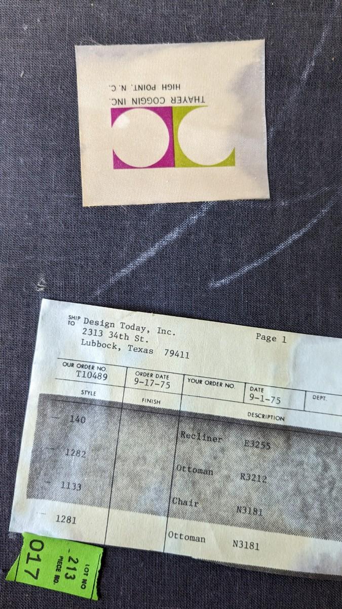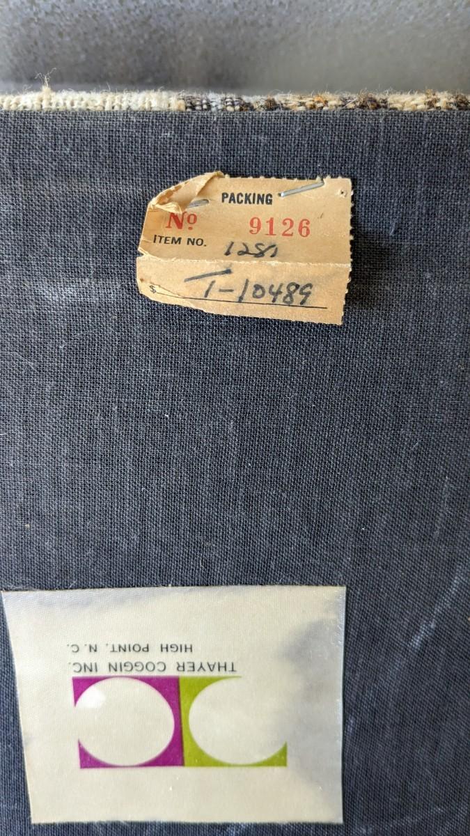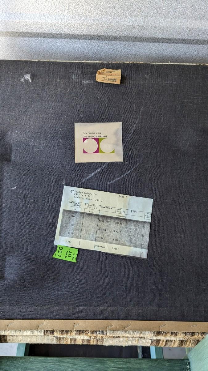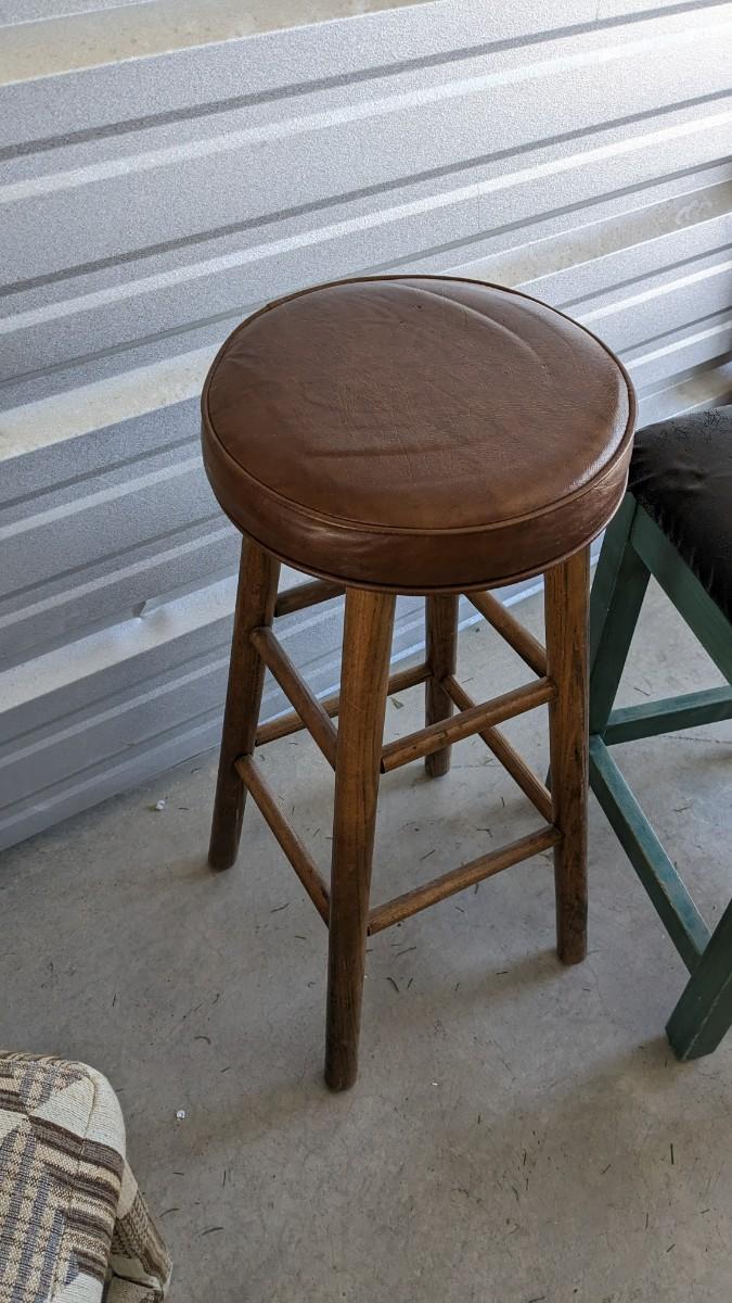 Includes (2) 15.75"x15.75"x 24" mated stools, one of the tops needs to be reattached. 18"x21"x19" upholstered ottoman/stool with great geometric fabric, some pilling noted, and a vintage 30" bar stool. Note: all pieces show wear but are in good useable condition with great upcycle potential. No shipping. 2616