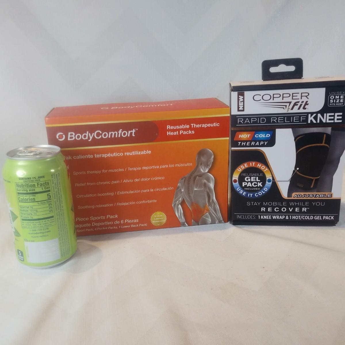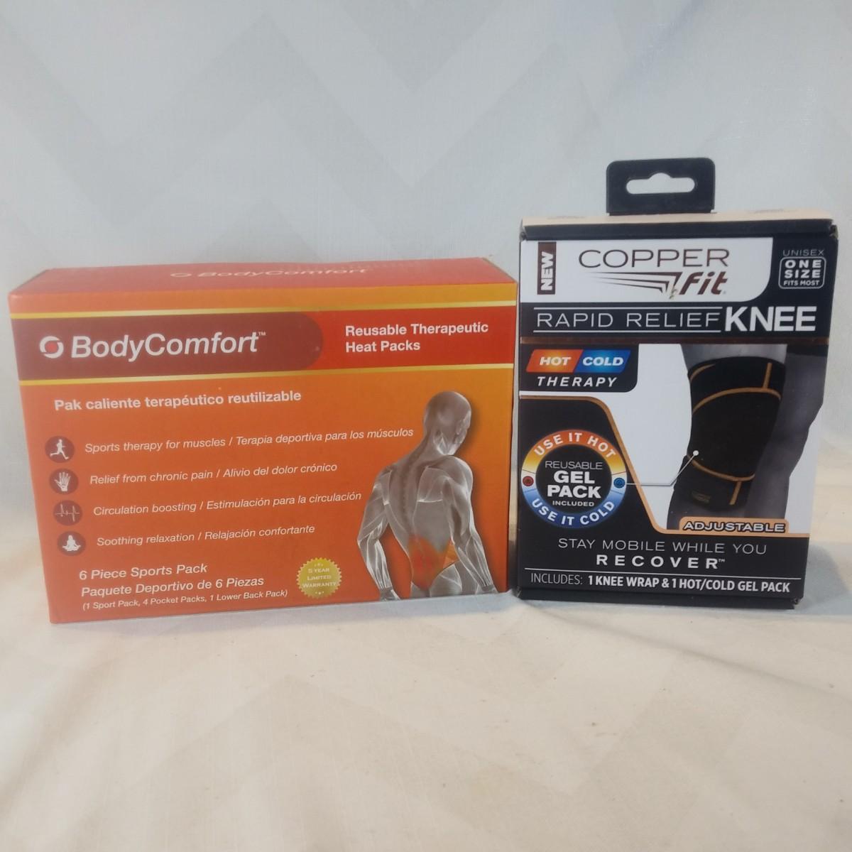This auction lot is for a grouping of Stop the Pain/ Medical Products to help you relieve the pain. One box is of Reusable Heat Packs and the other is a Copper Fit Knee Brace. Both are new and unused.