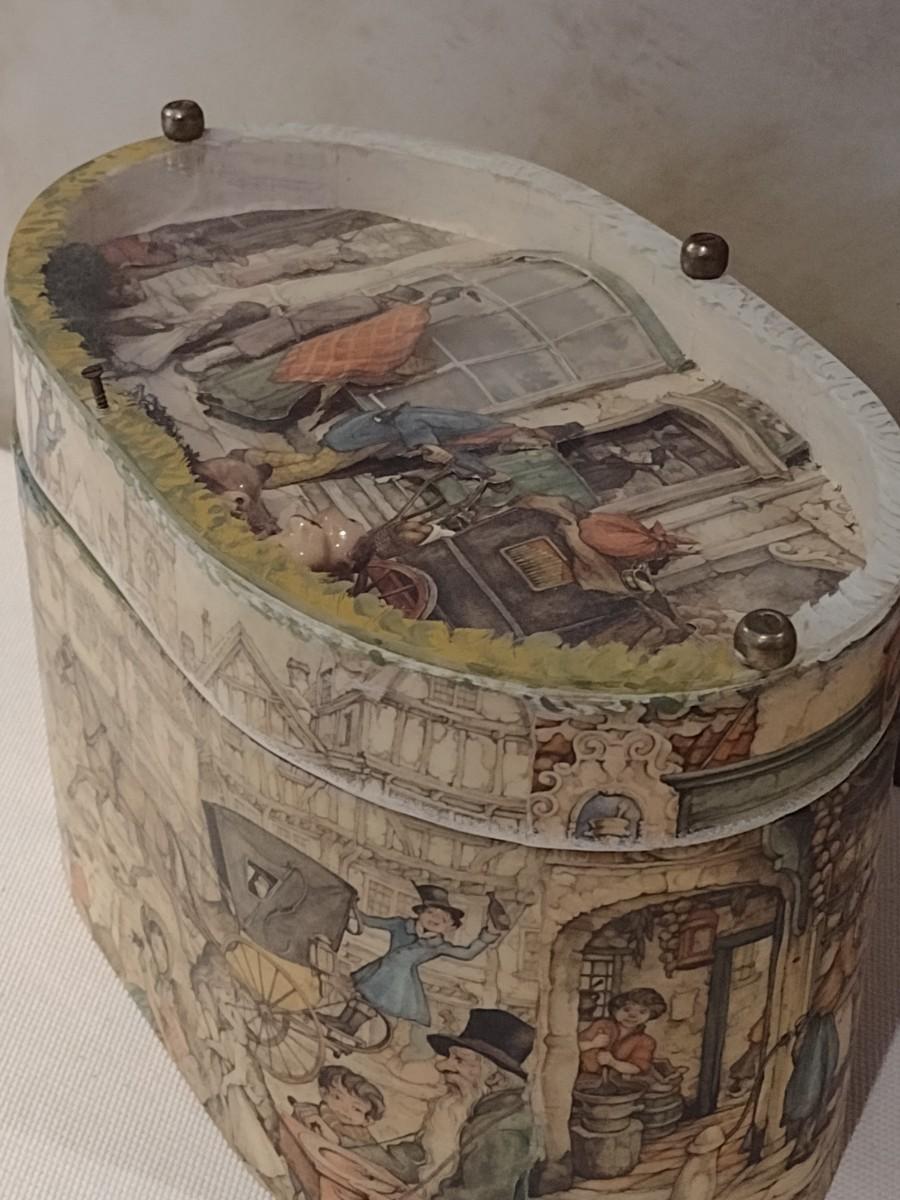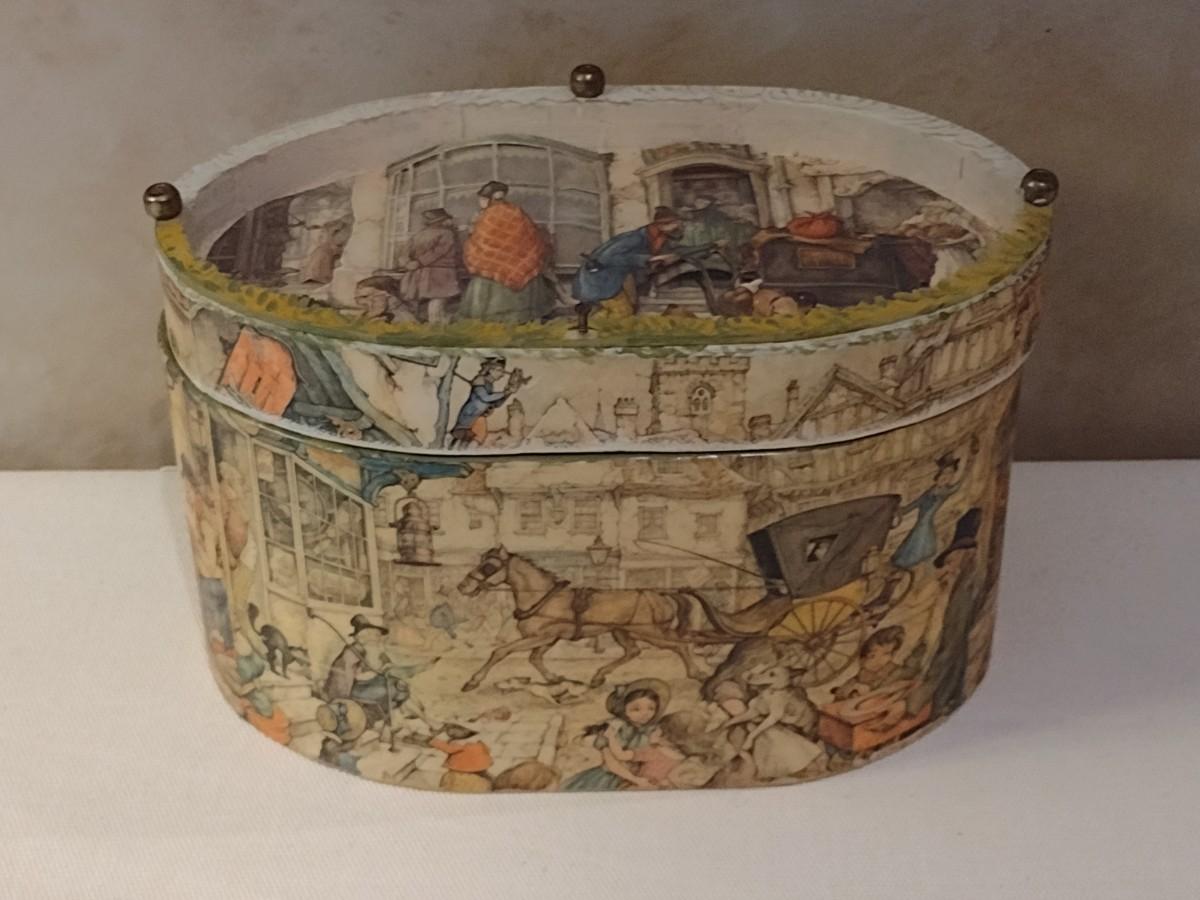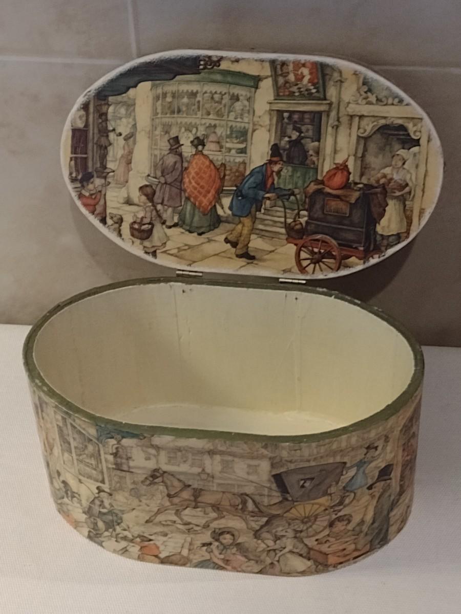 Vintage Anton Pieck Decoupage Oval Storage Box