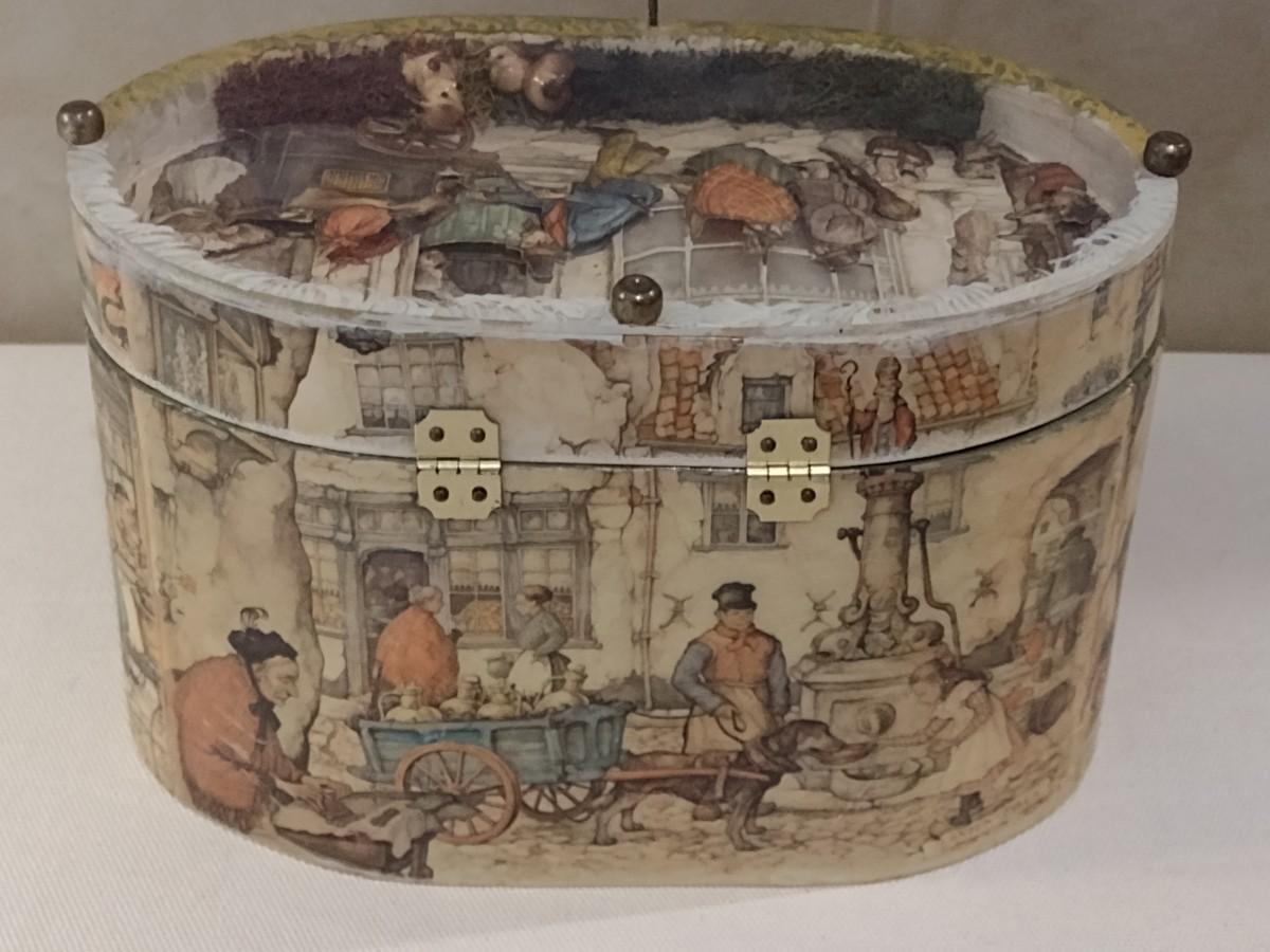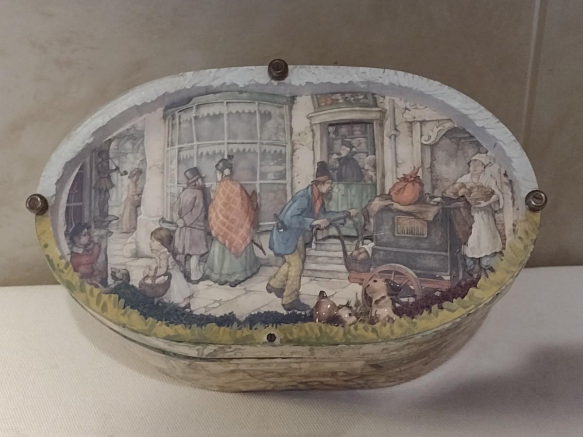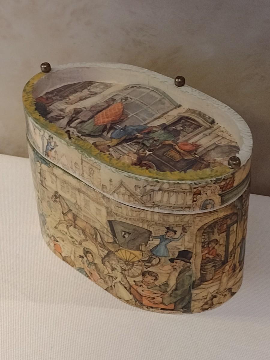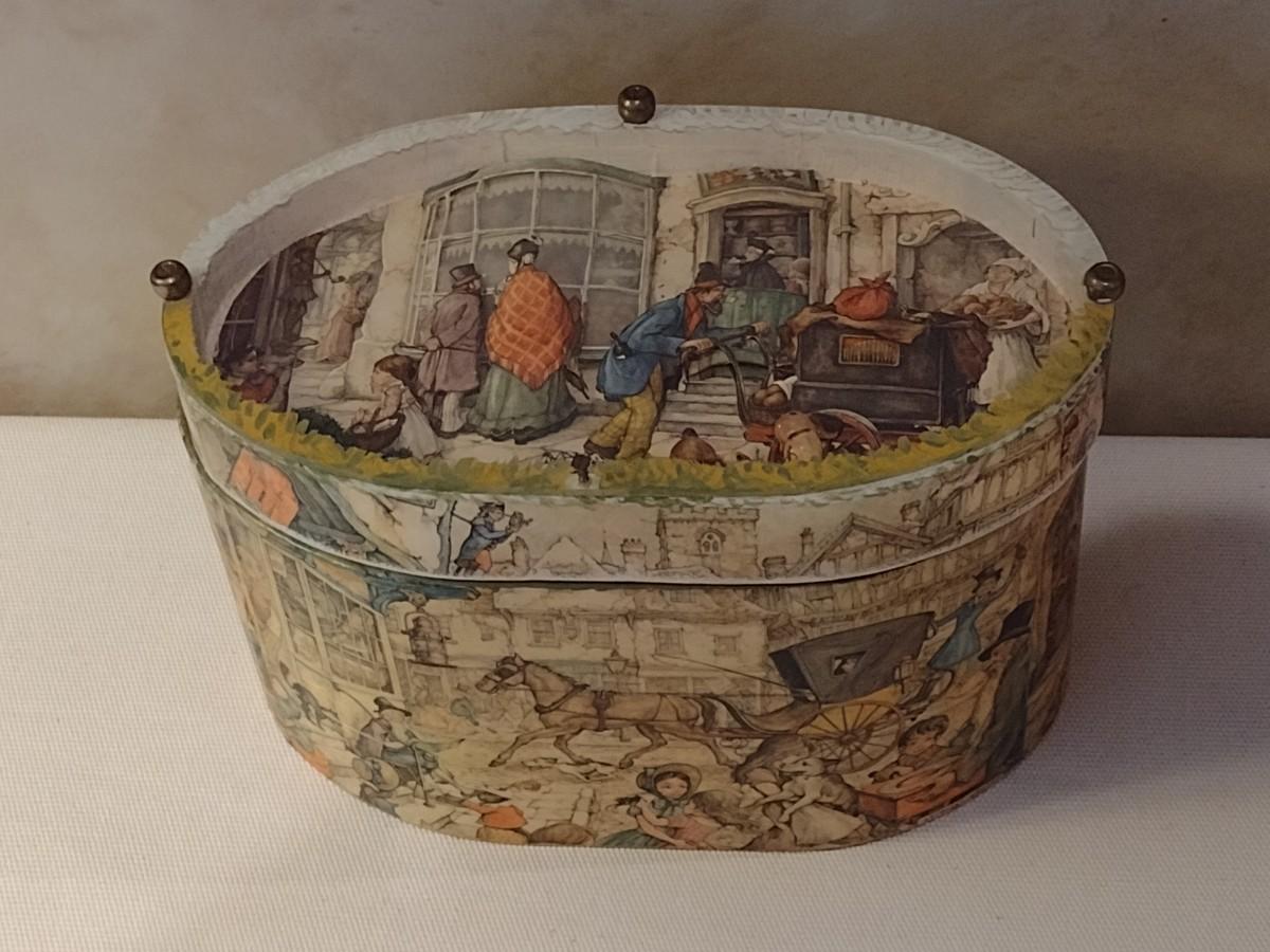 Vintage Anton Pieck Decoupage Oval Storage Box