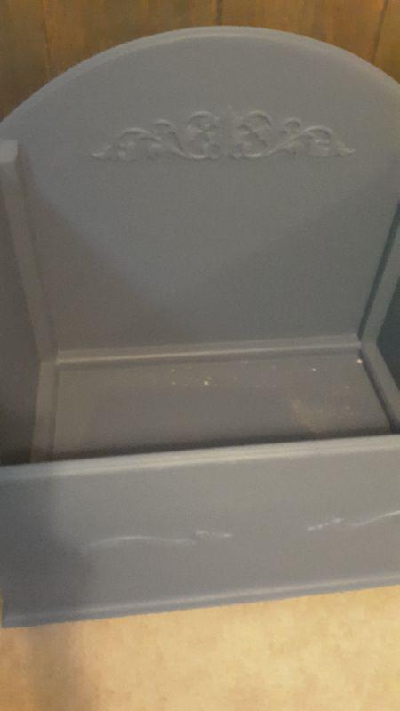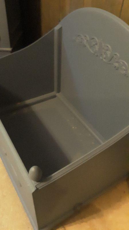 MADE OF WOOD. PAINTED GREEN COLOR THAT MATCHES CABINET IN PREVIOUS LOT.