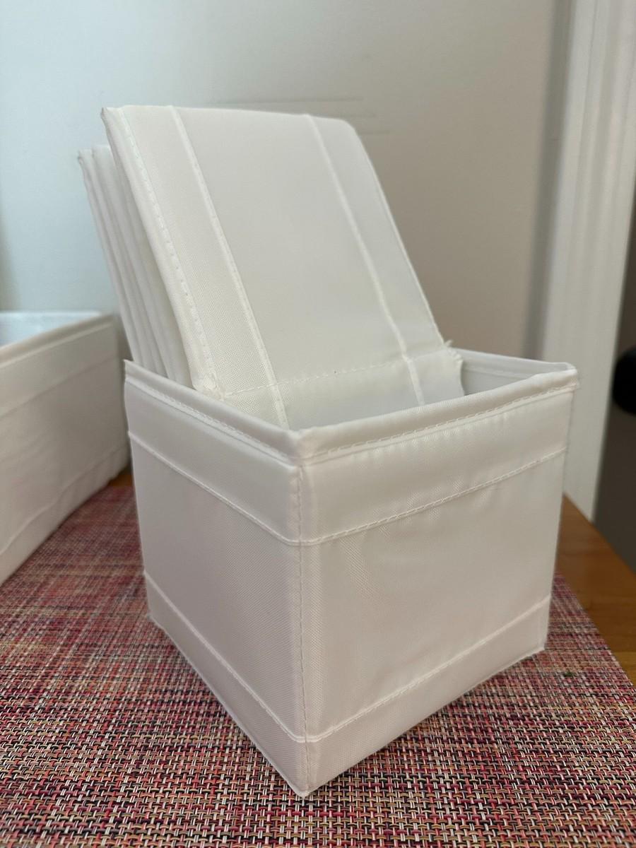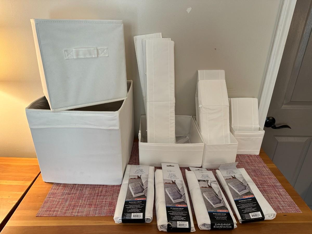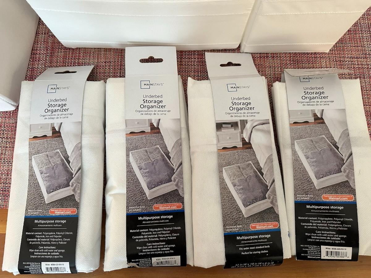 1-13"x13", 1-11" square, 4-11" square, 3 - 11x51/5, 1- 5 1/2' square, 4 under the bed storage containers
