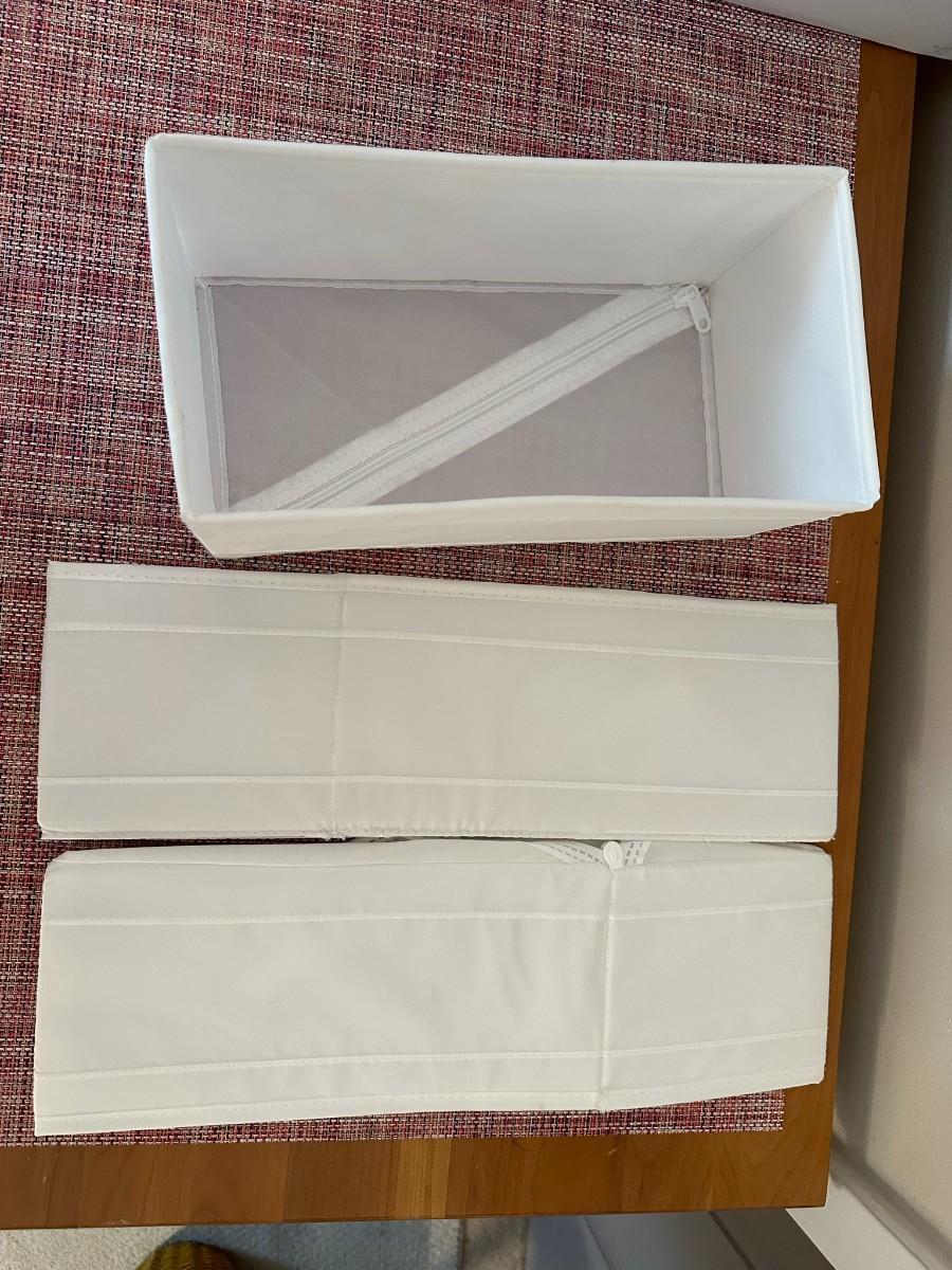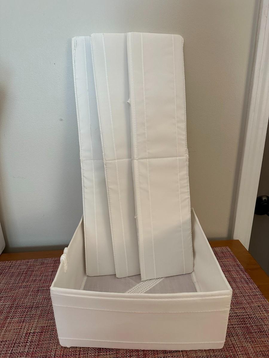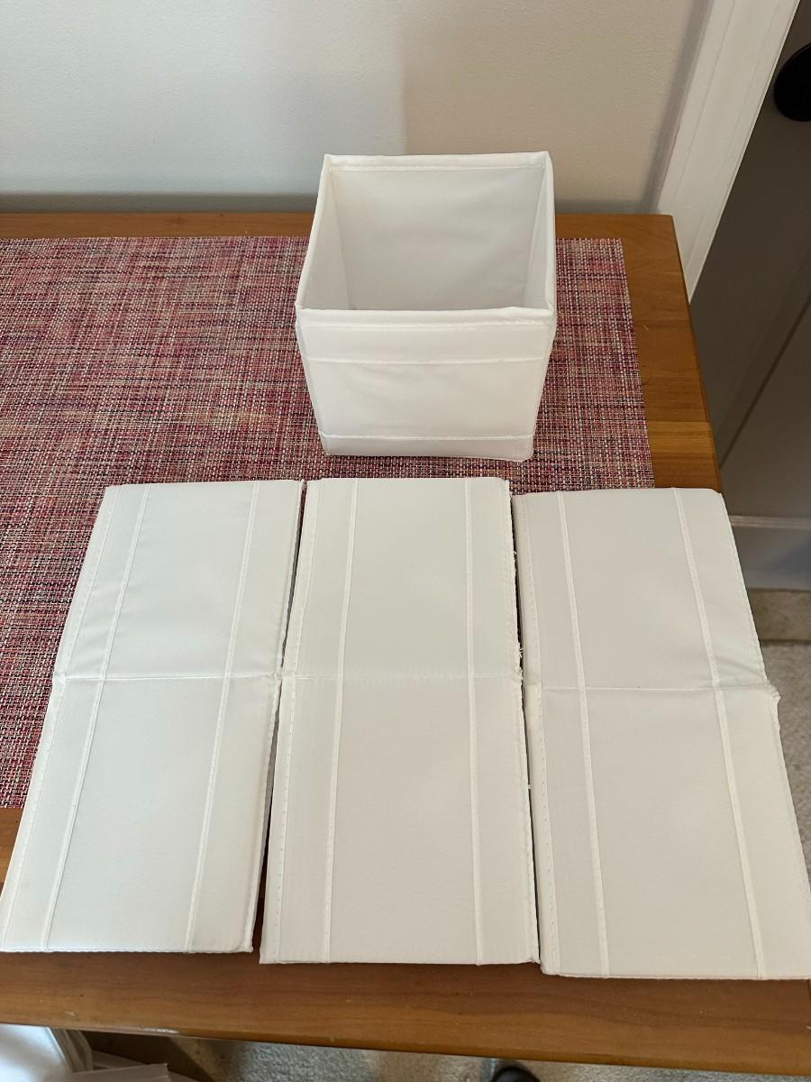 1-13"x13", 1-11" square, 4-11" square, 3 - 11x51/5, 1- 5 1/2' square, 4 under the bed storage containers