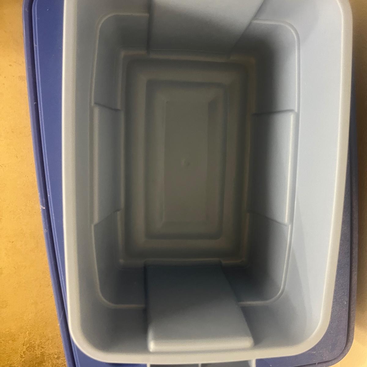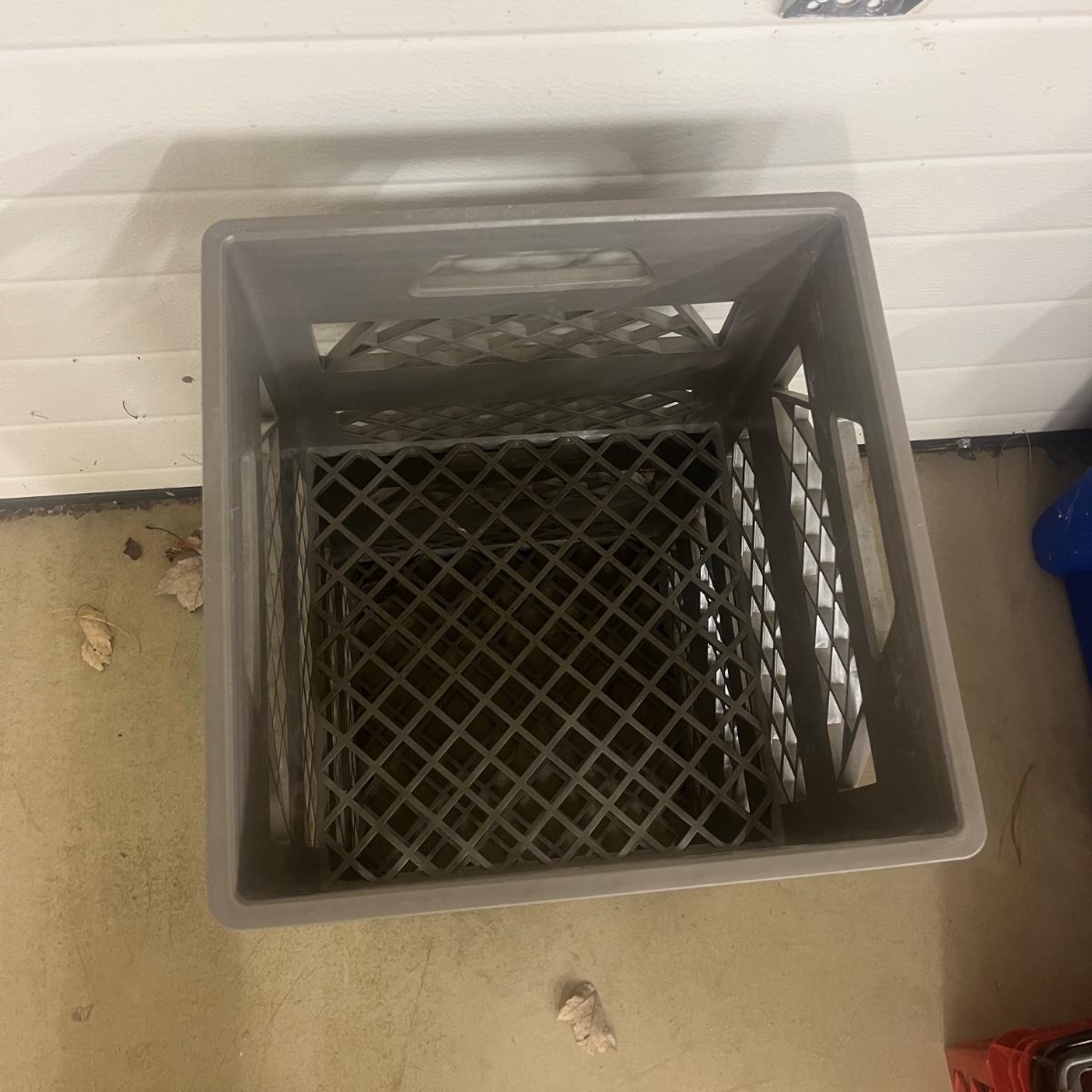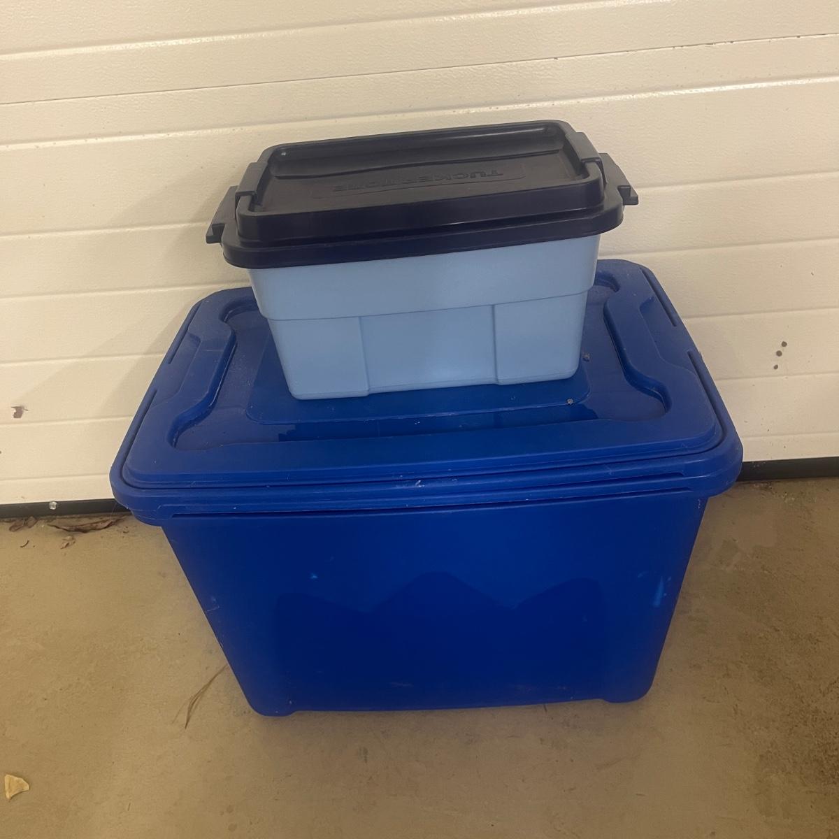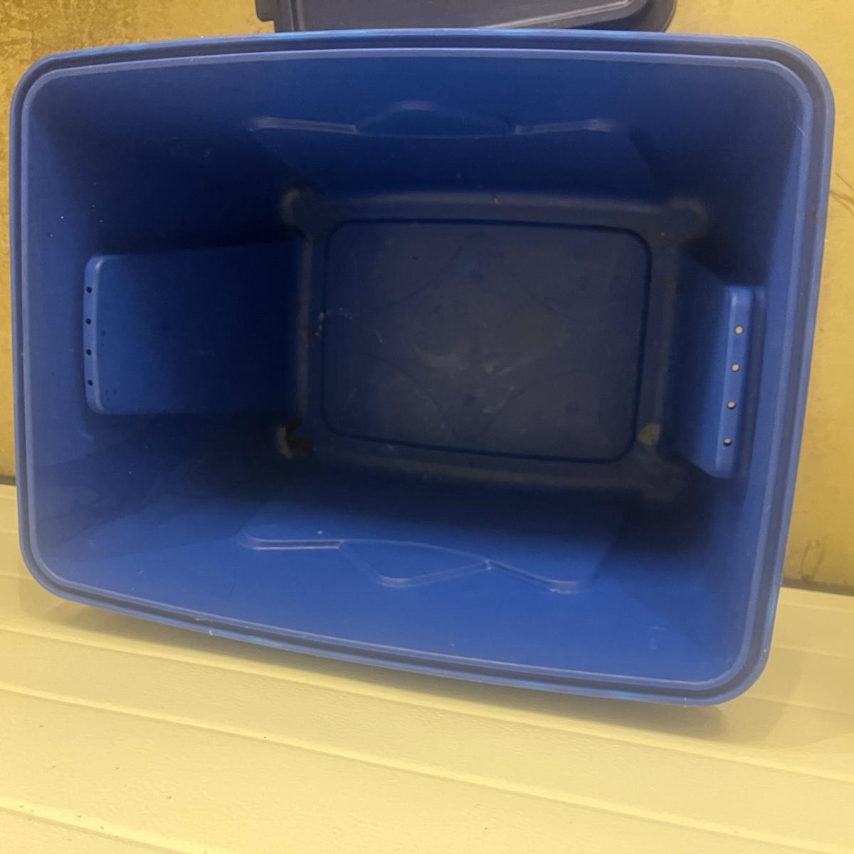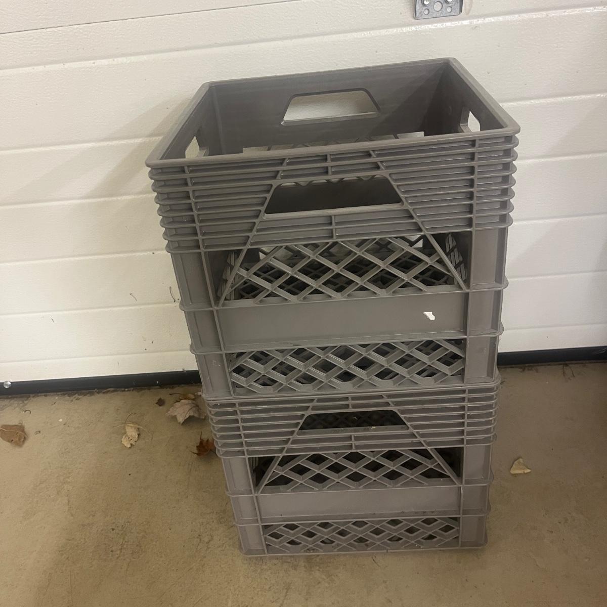 Lot Includes two baskets with handles, two crates, two storage bins with lids, two small storage bins and more. Largest bin measures 17” x 23” x 16”H.