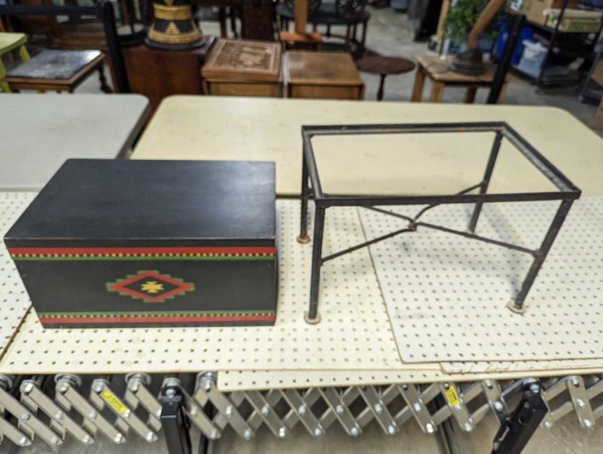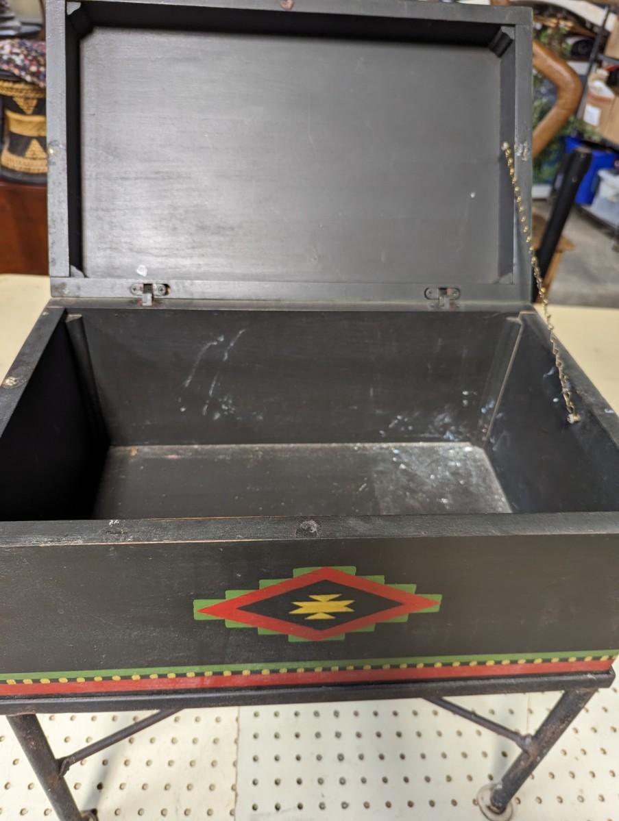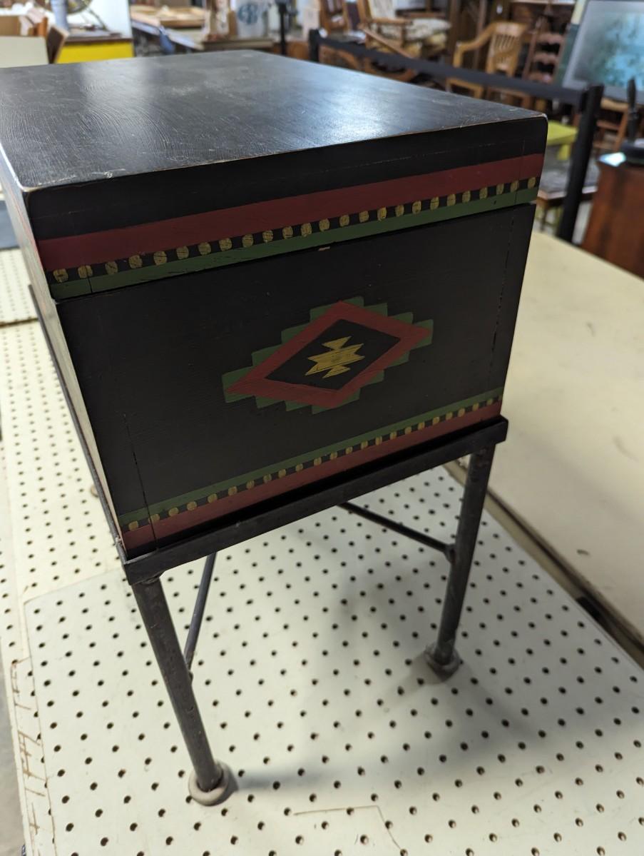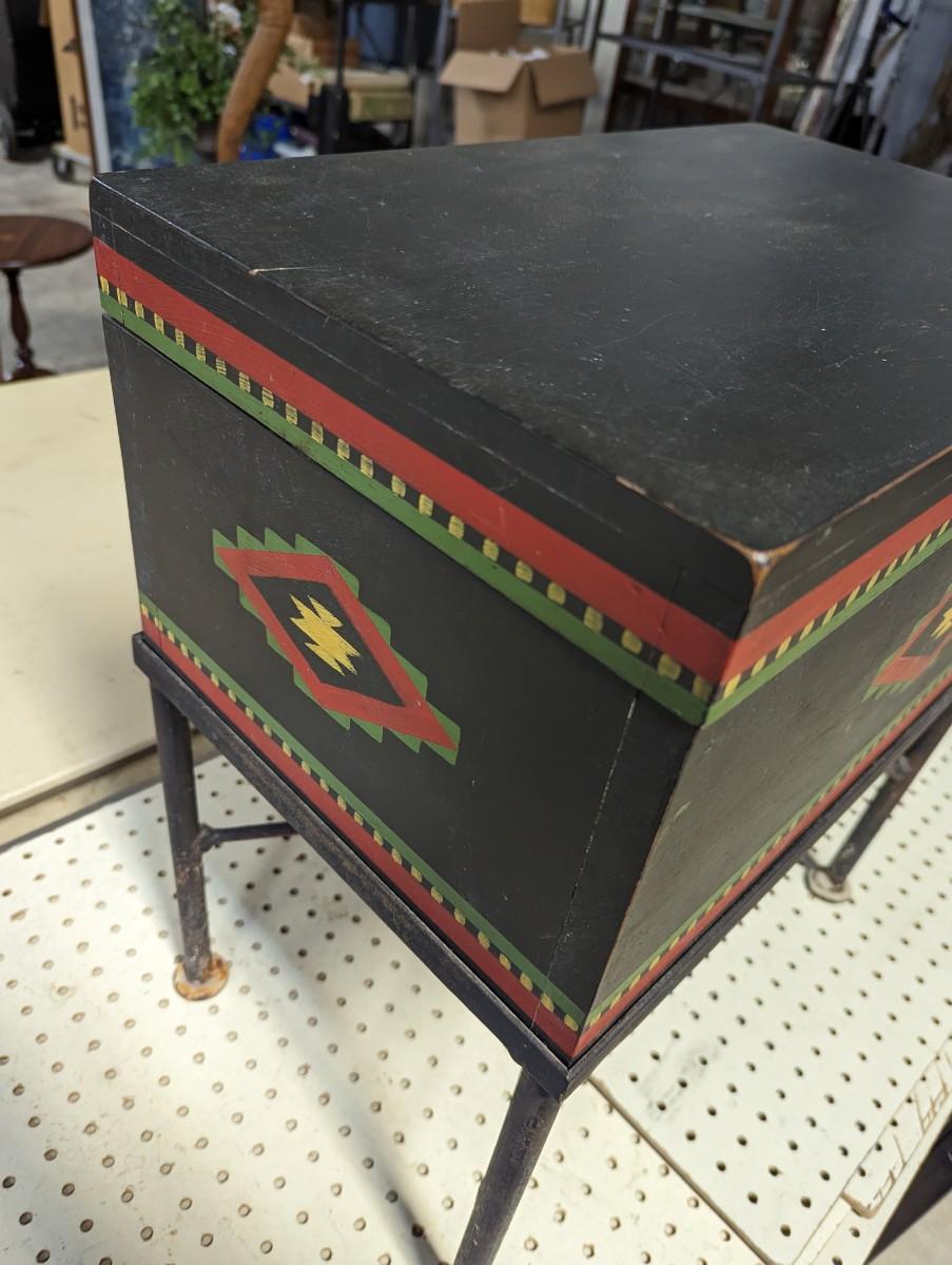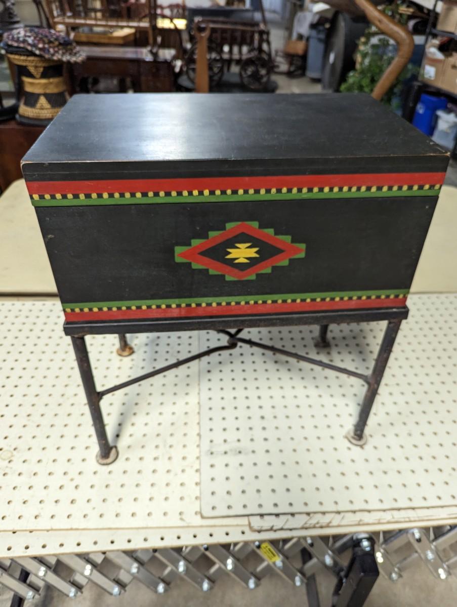 Hand Painted Decorative Storage Box on Metal Stand