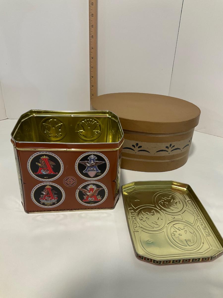 Oval shaped wood tiered boxes fit inside one another when not in use Americana Themed