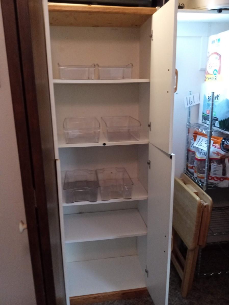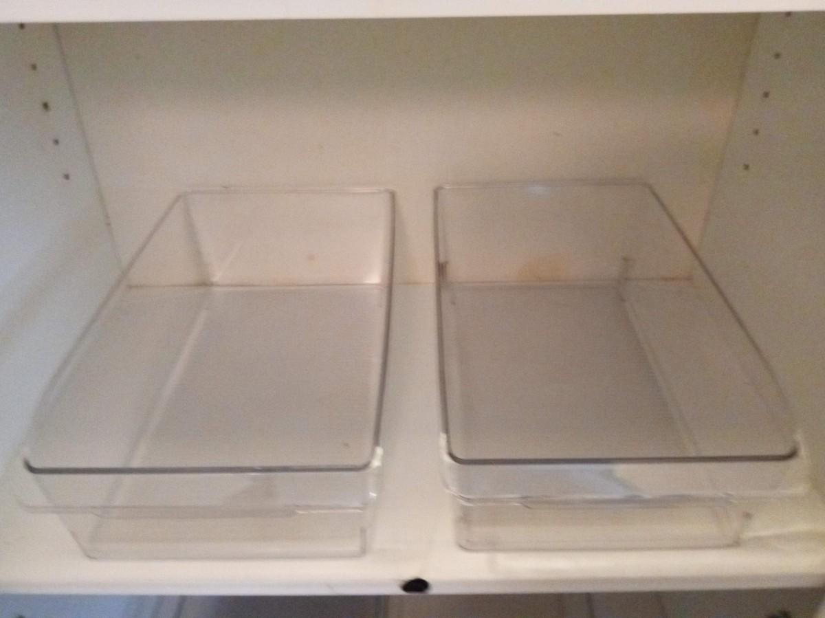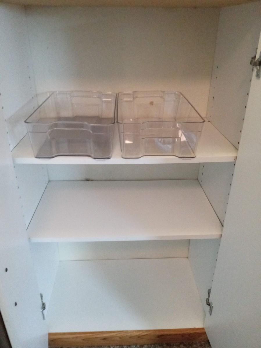 STORAGE CABINET AND PLASTIC ORGANIZERS