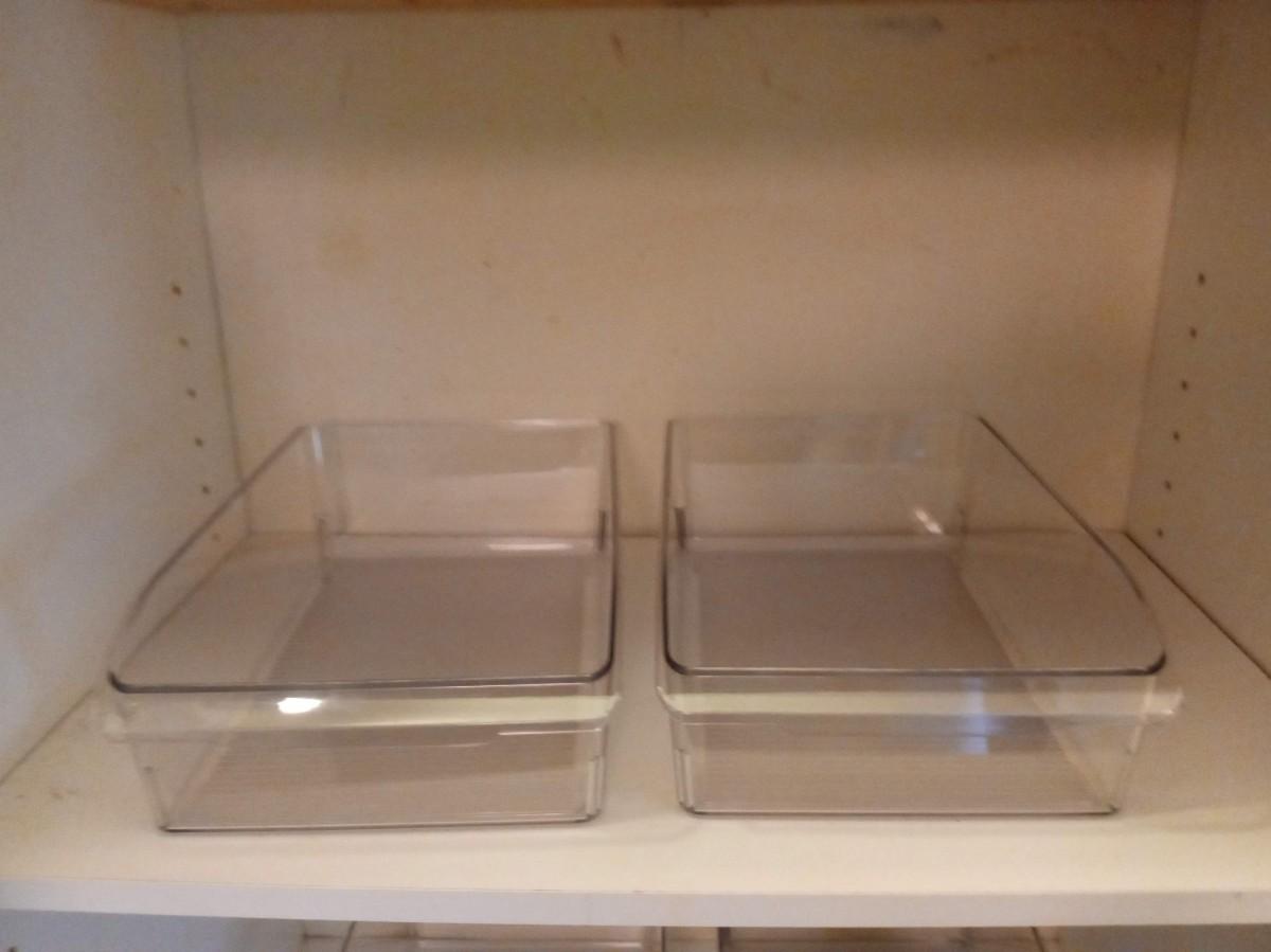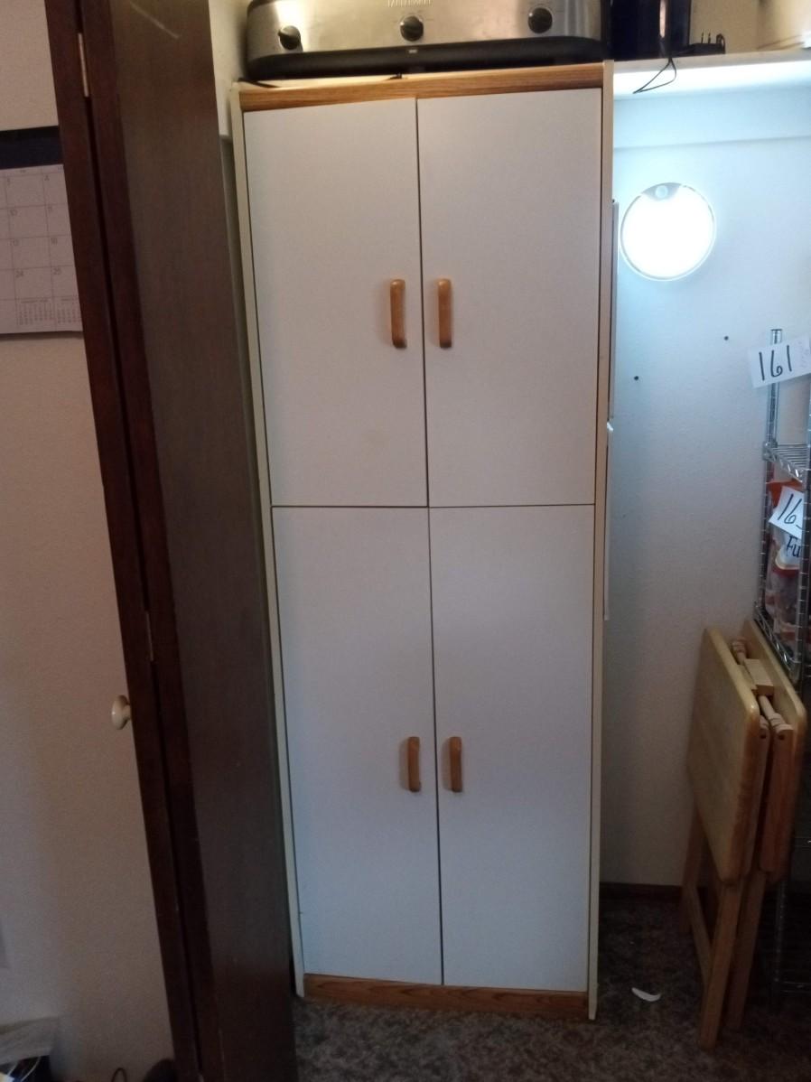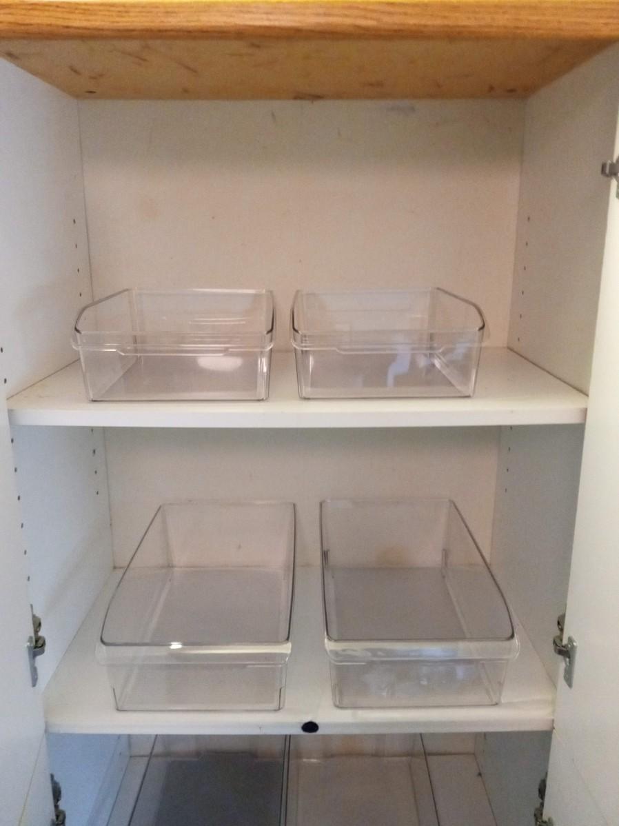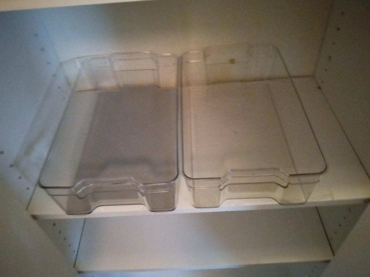 STORAGE CABINET AND PLASTIC ORGANIZERS