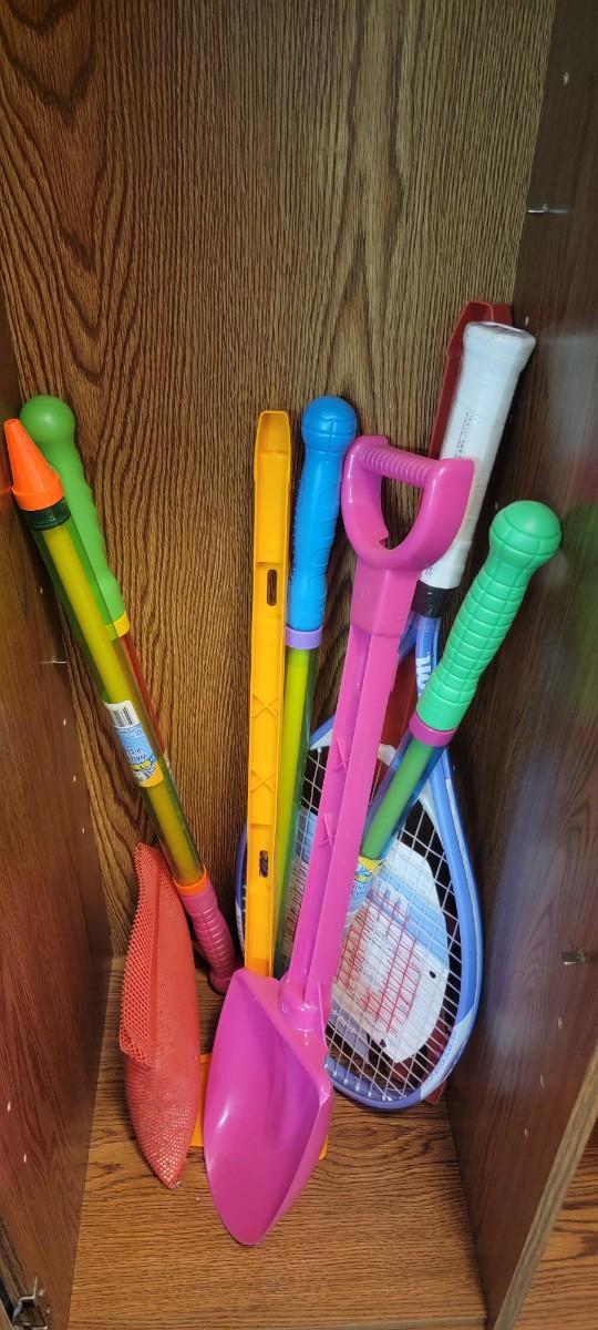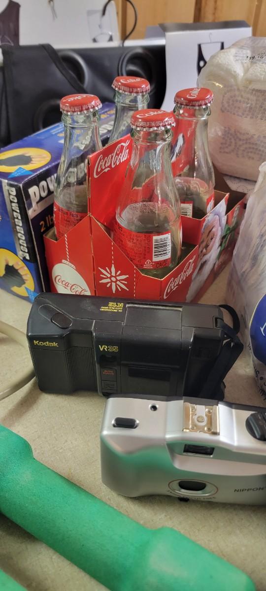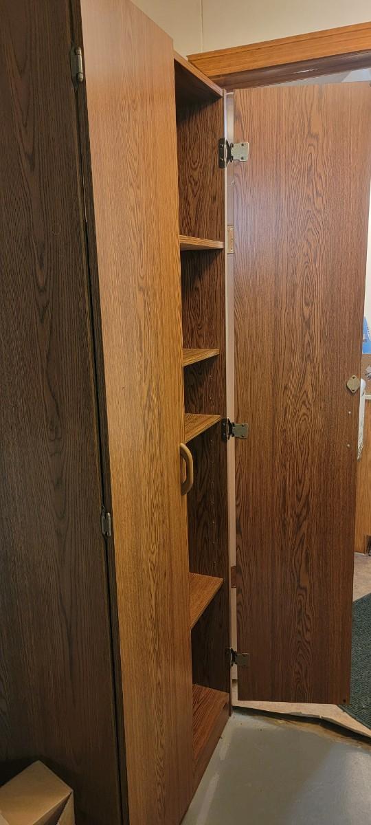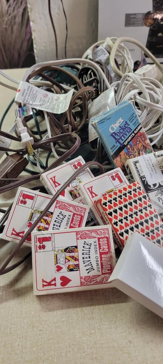 28" W x 16" D x 72" H cabinet. Contents included. Coke bottles, cards. Cords and more miscellaneous