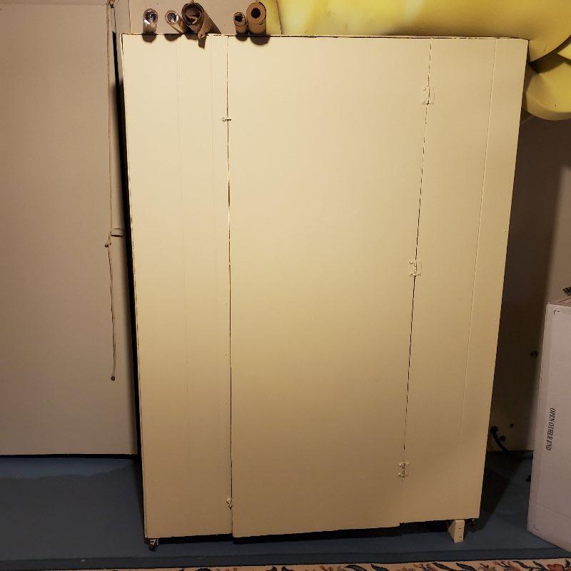 This is a wonderful storage cabinet for a basement or garage. It is very large and will take at least 2 people to get out of the basement.