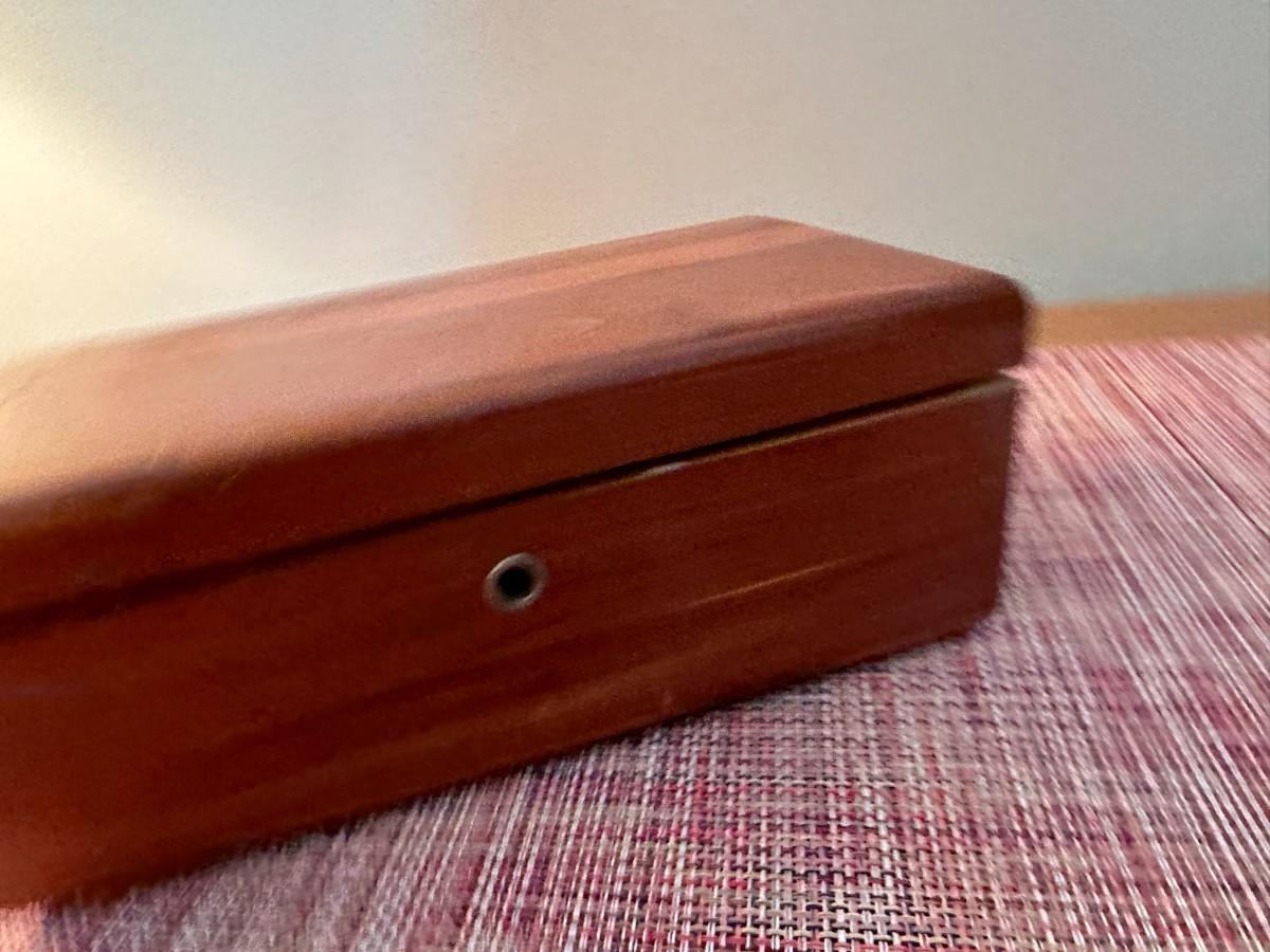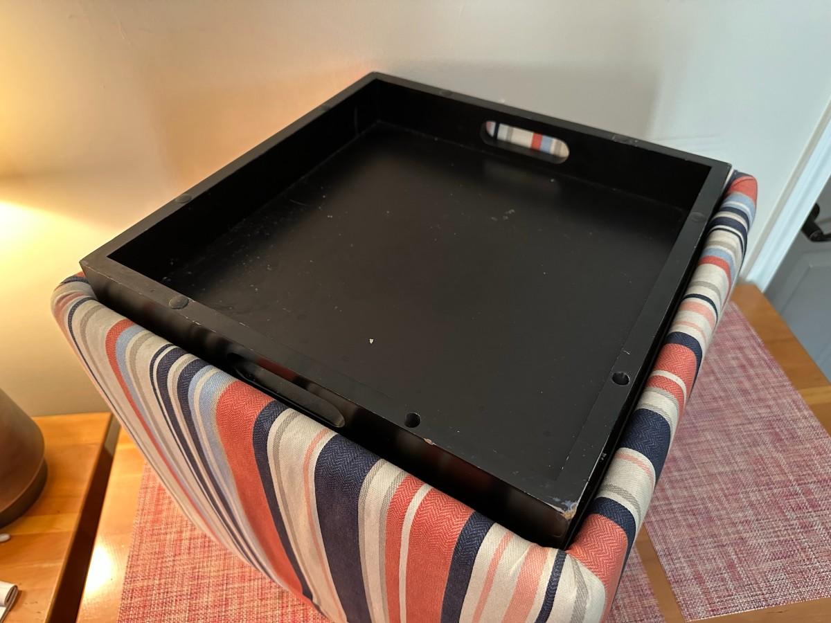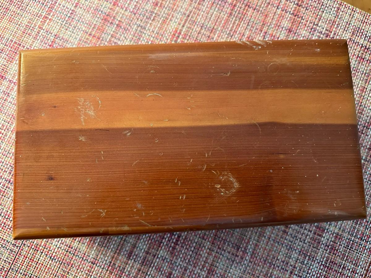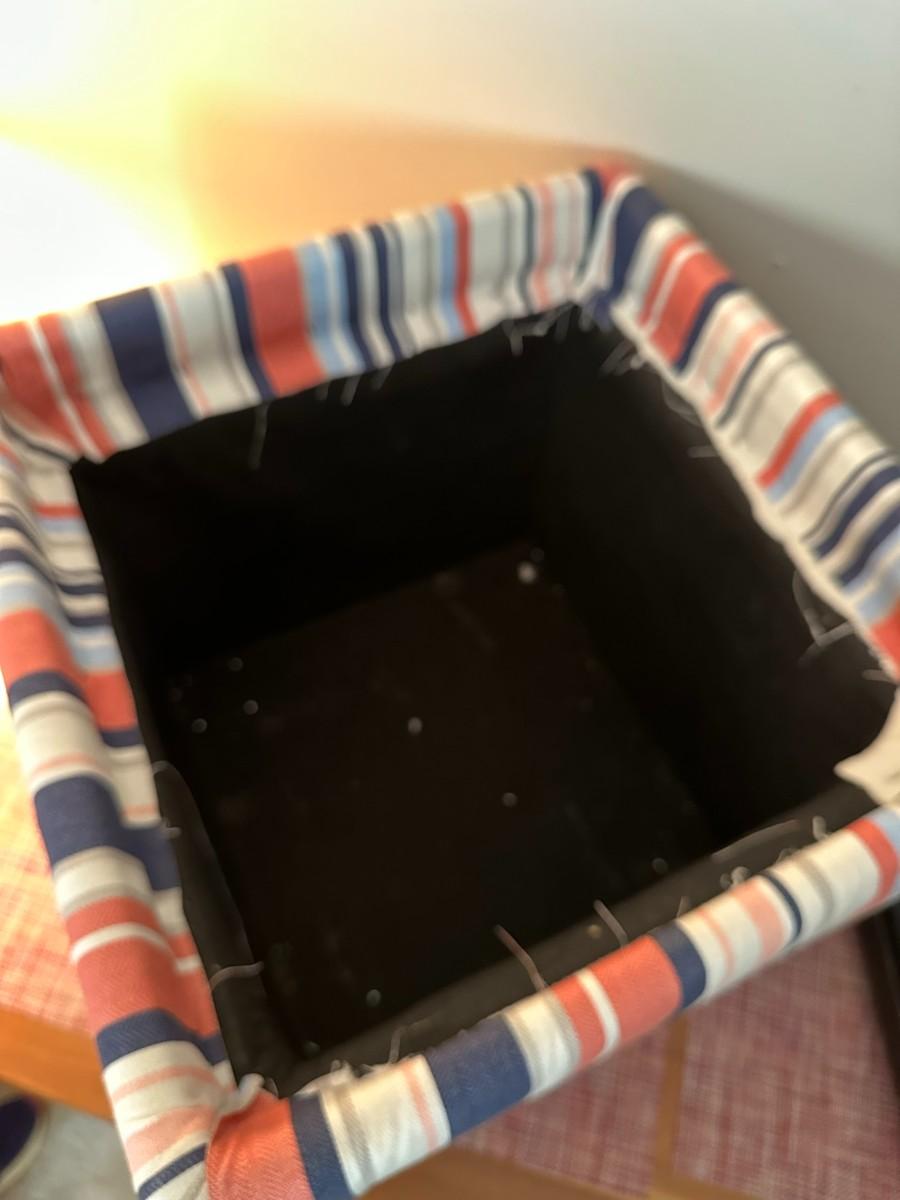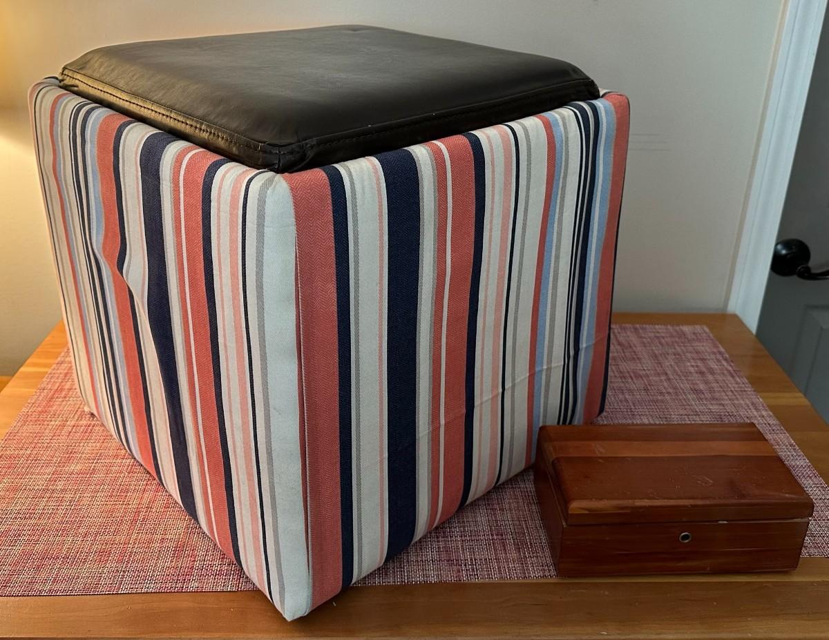1 mini Cedar box by lane, 1 storage stool with striped fabric 18x18x17