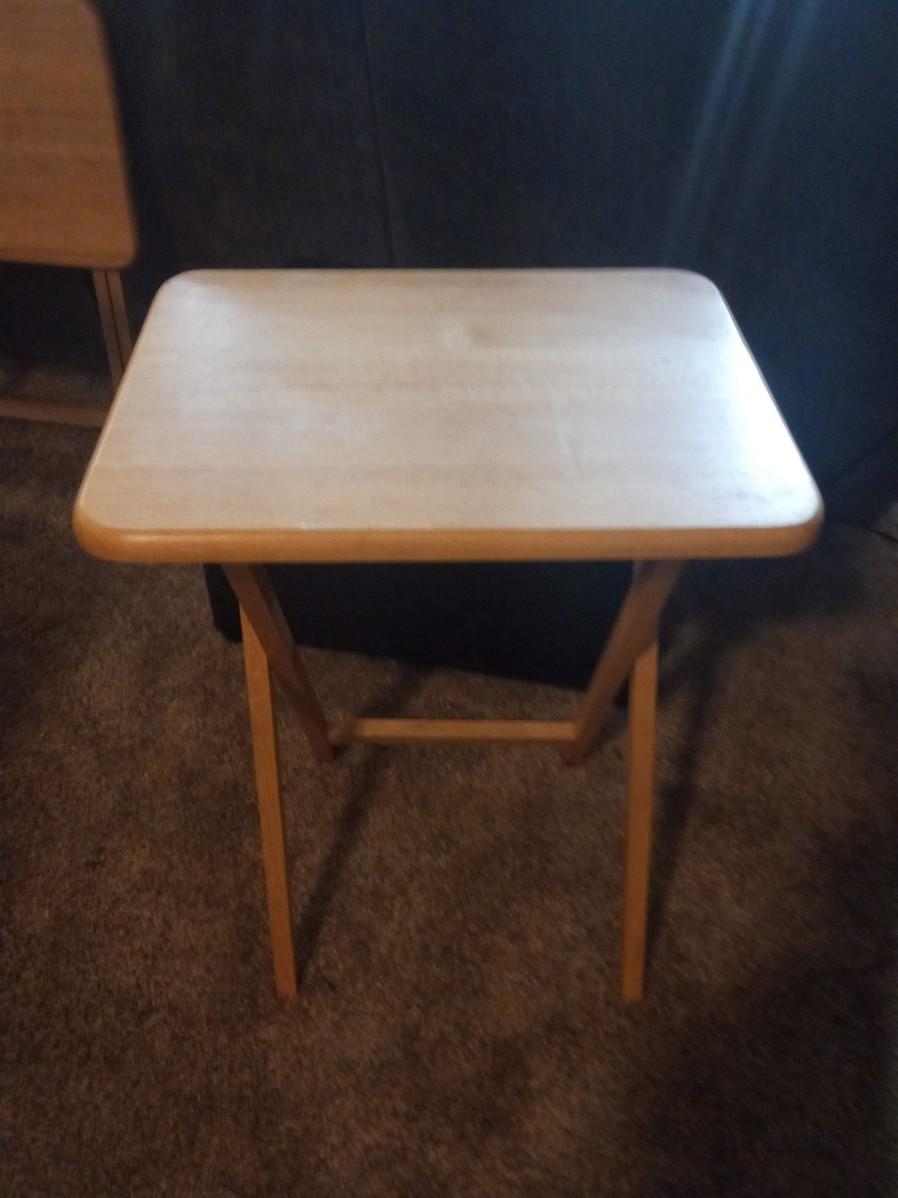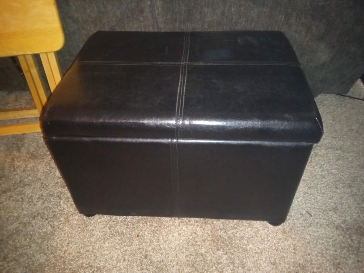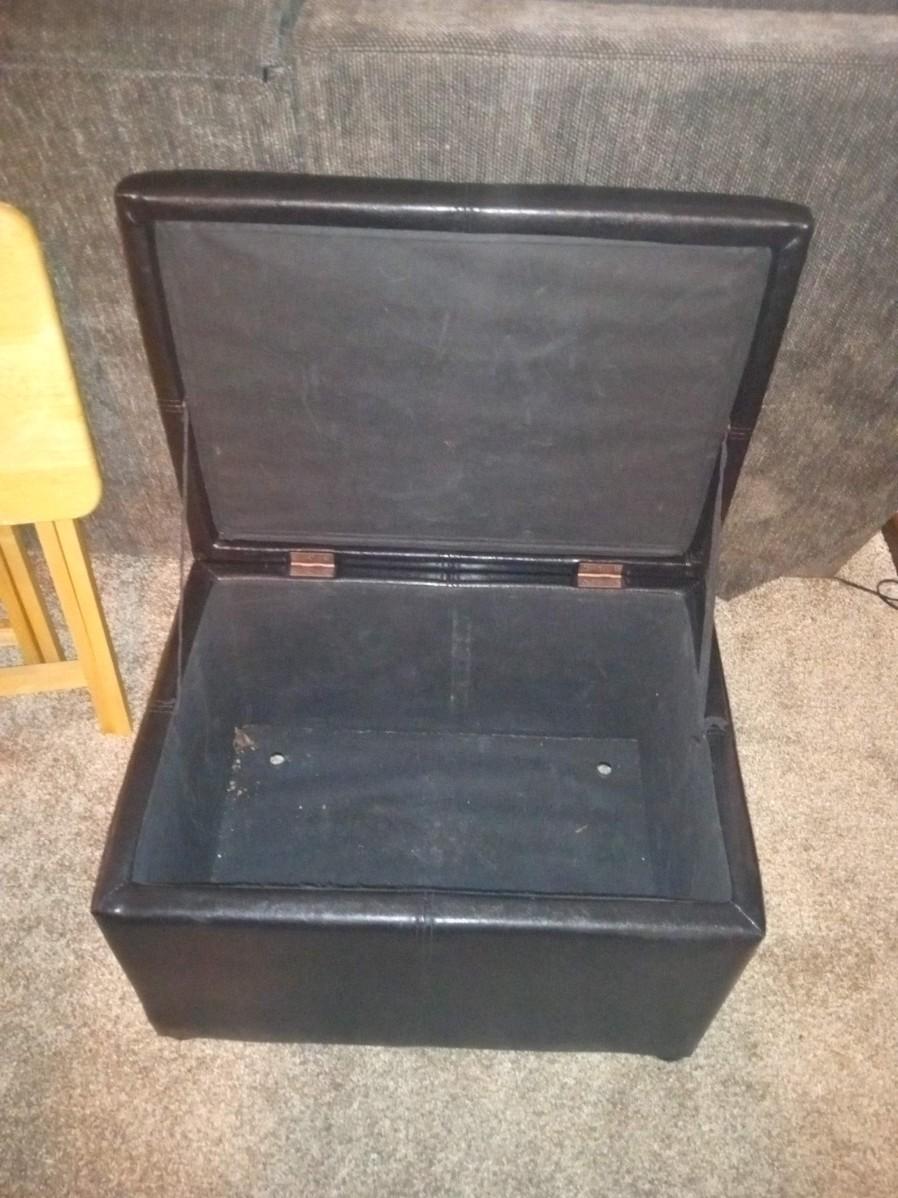 STORAGE OTTOMAN AND 2 OAK TV TRAYS