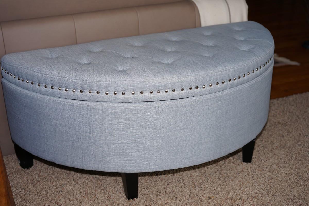 STORAGE OTTOMAN TUFT BUTTON TOP IN GREY TONE