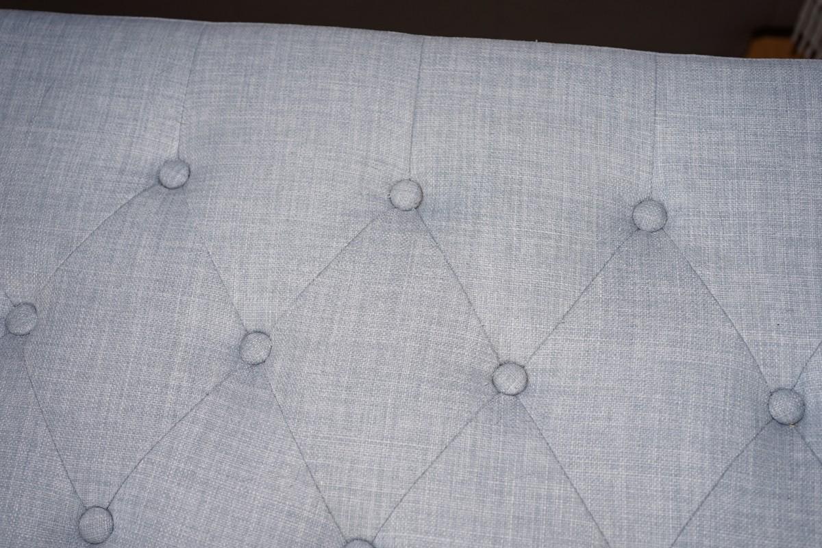 Slight fray to fabric on the top but very small. Nice grey blue color with tack trim