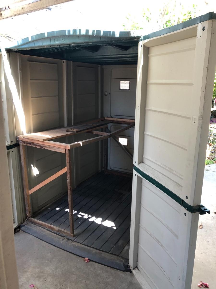 Plastic storage shed. Opens at the side. MUST BE PICKED UP MAY 28th or MAY 29th in ANAHEIM