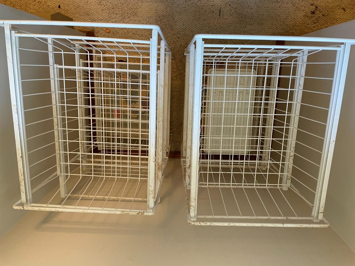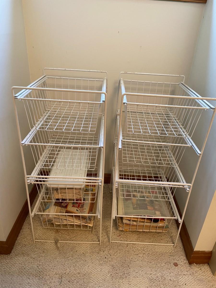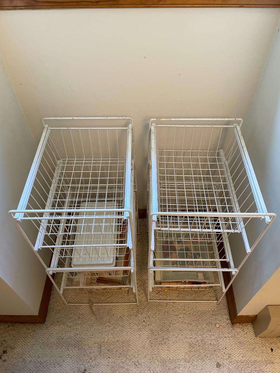 Two included. Drawers pull out. Wearing as seen in photos. 16 1/2L x 13w x 31 1/2h