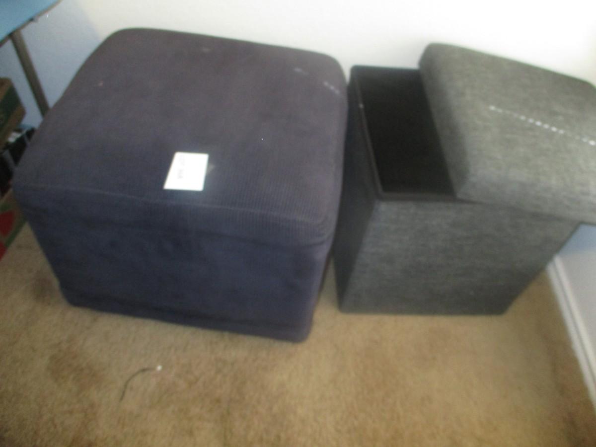 Corduroy navy storage seat. Gray denim collapsible storage seat. (2pcs)
