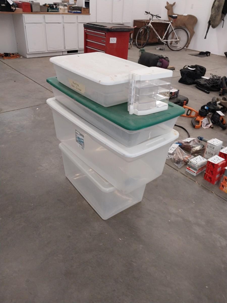STORAGE TOTES AND A MULTI DRAWER ORGANIZER