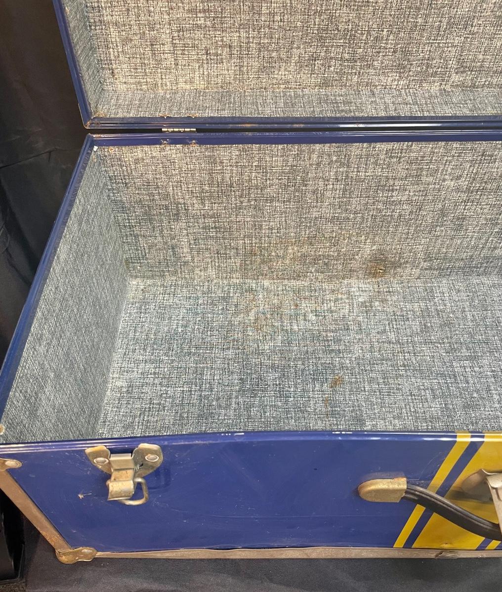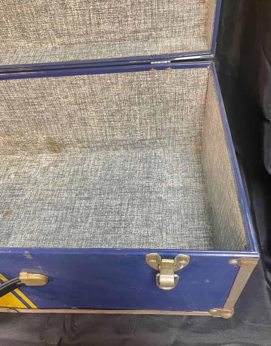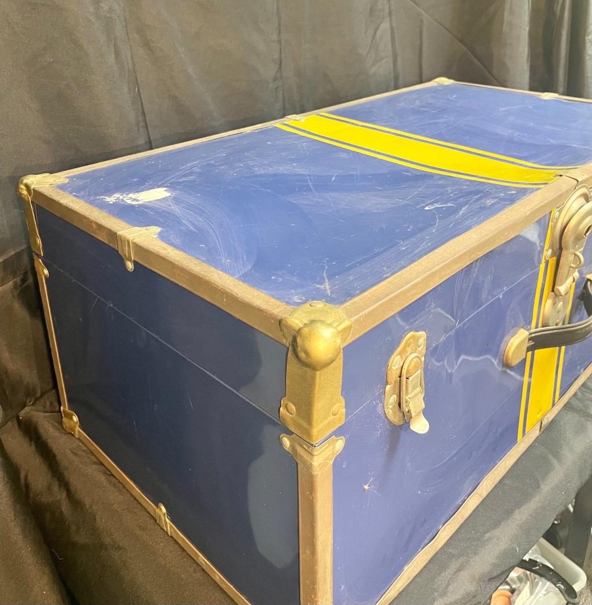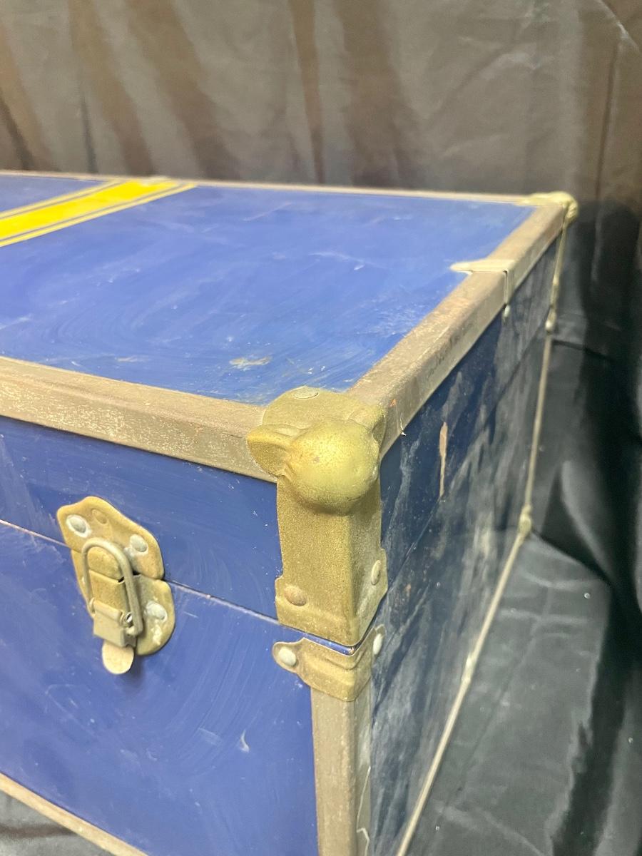 Vintage Blue and Yellow Storage Trunk 30". In fair used condition.