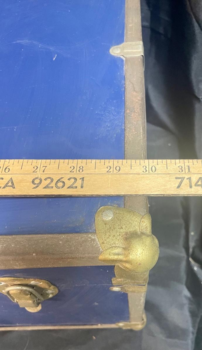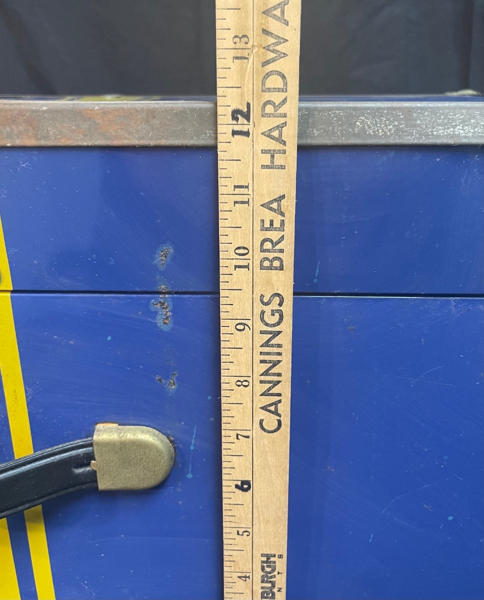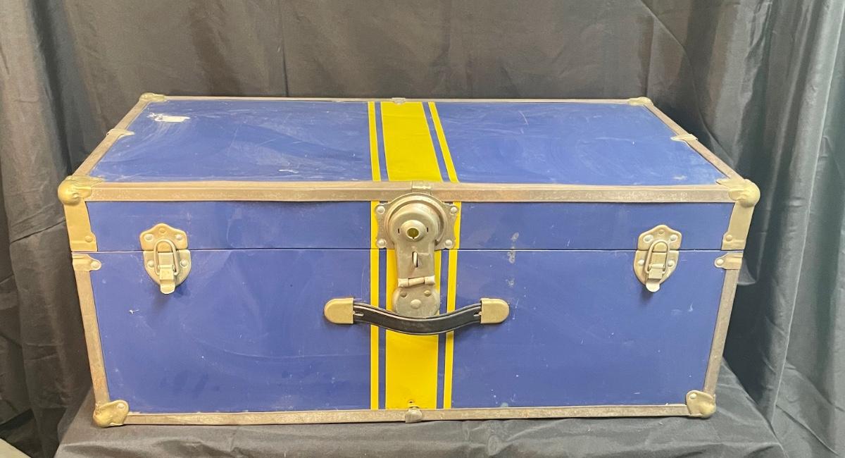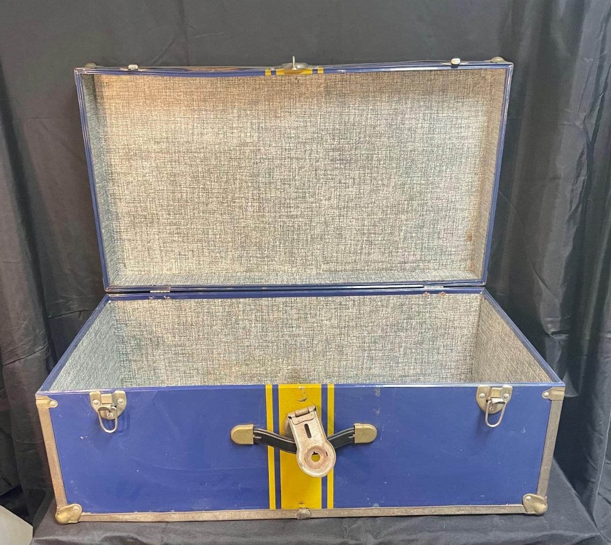 Vintage Blue and Yellow Storage Trunk 30". In fair used condition.
