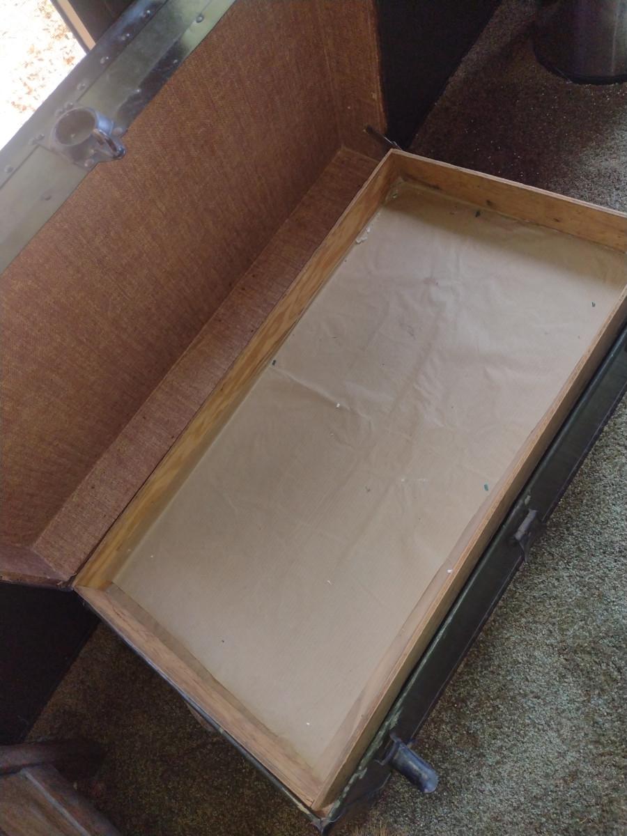 Storage Trunk- Measures Approx 30 1/2" x 16 3/4" x 13" Tall. Item has tray, but is missing one handle.