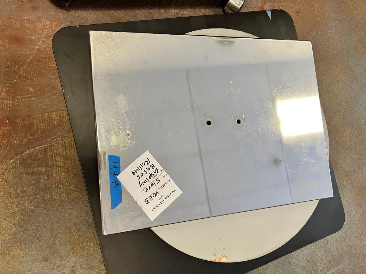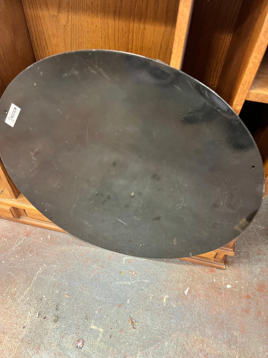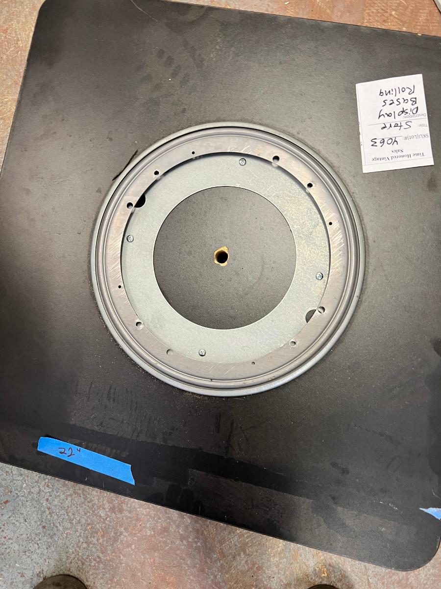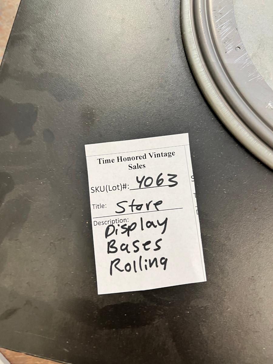 2 Movable stands both heavy. The larger features a turntable where you might fit the large circular plate on the smaller plate has a screw to place the mannequin on. the rectangle stand breaks into a top and bottom you get the black IKEA circular plate as well.. No shipping