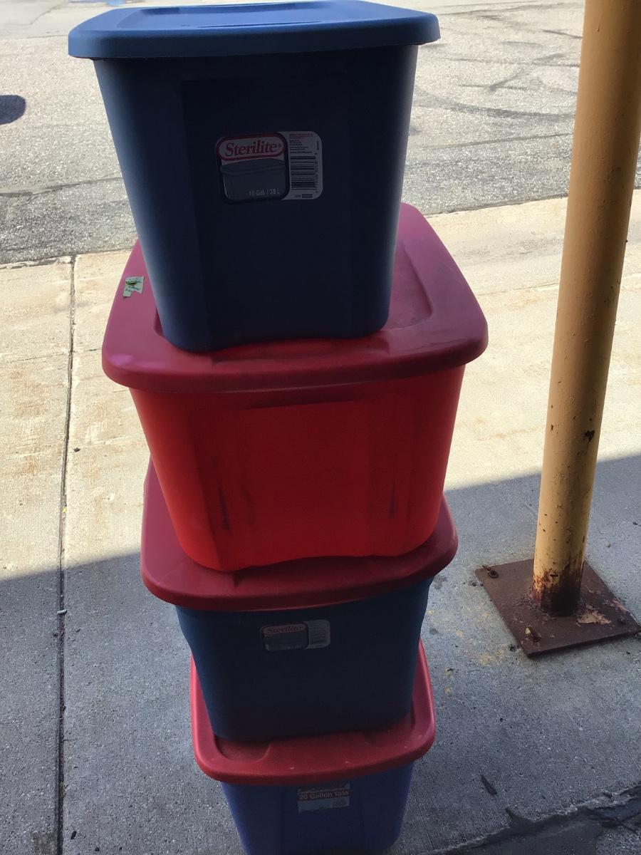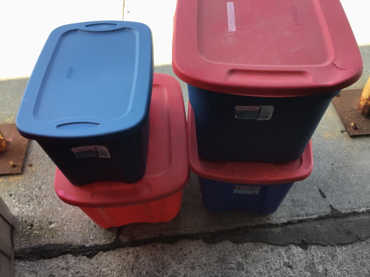 You get four tubs with snap on lids. Three are 18 gals 1 is smaller