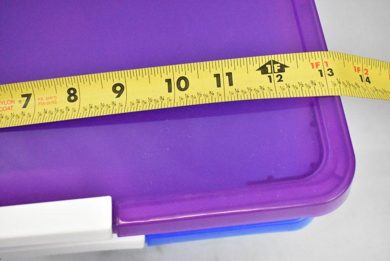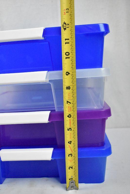 Storex 12x12 Stack & Store Box, Multiple Colors, Set of 4: 2 Blue, 1 purple, 1 clear - New