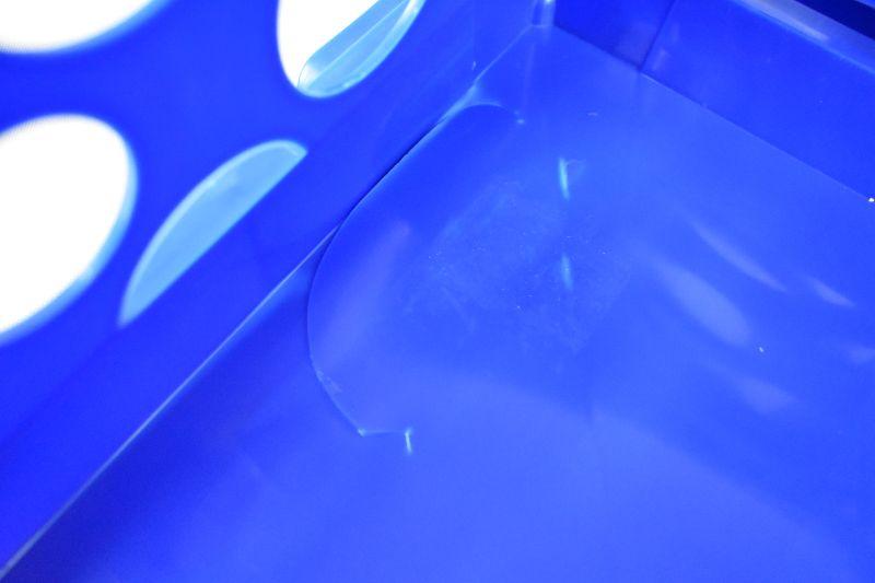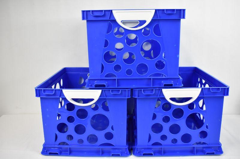Storex Blue Crates W/ White Handles, Set of 3 - New, One Cracked
