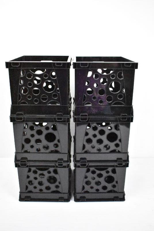 Storex Micro Crates, Black, Quantity Six, 5" x 6.5" x 5.5" - New