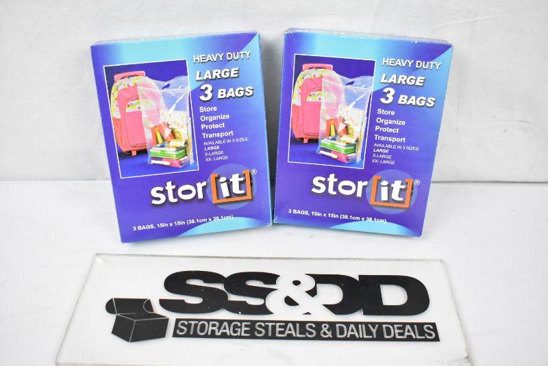 Stor-It Heavy Duty Large Bags, 2 Boxes, 3 in each box, 15"x15" each. Old stock - New